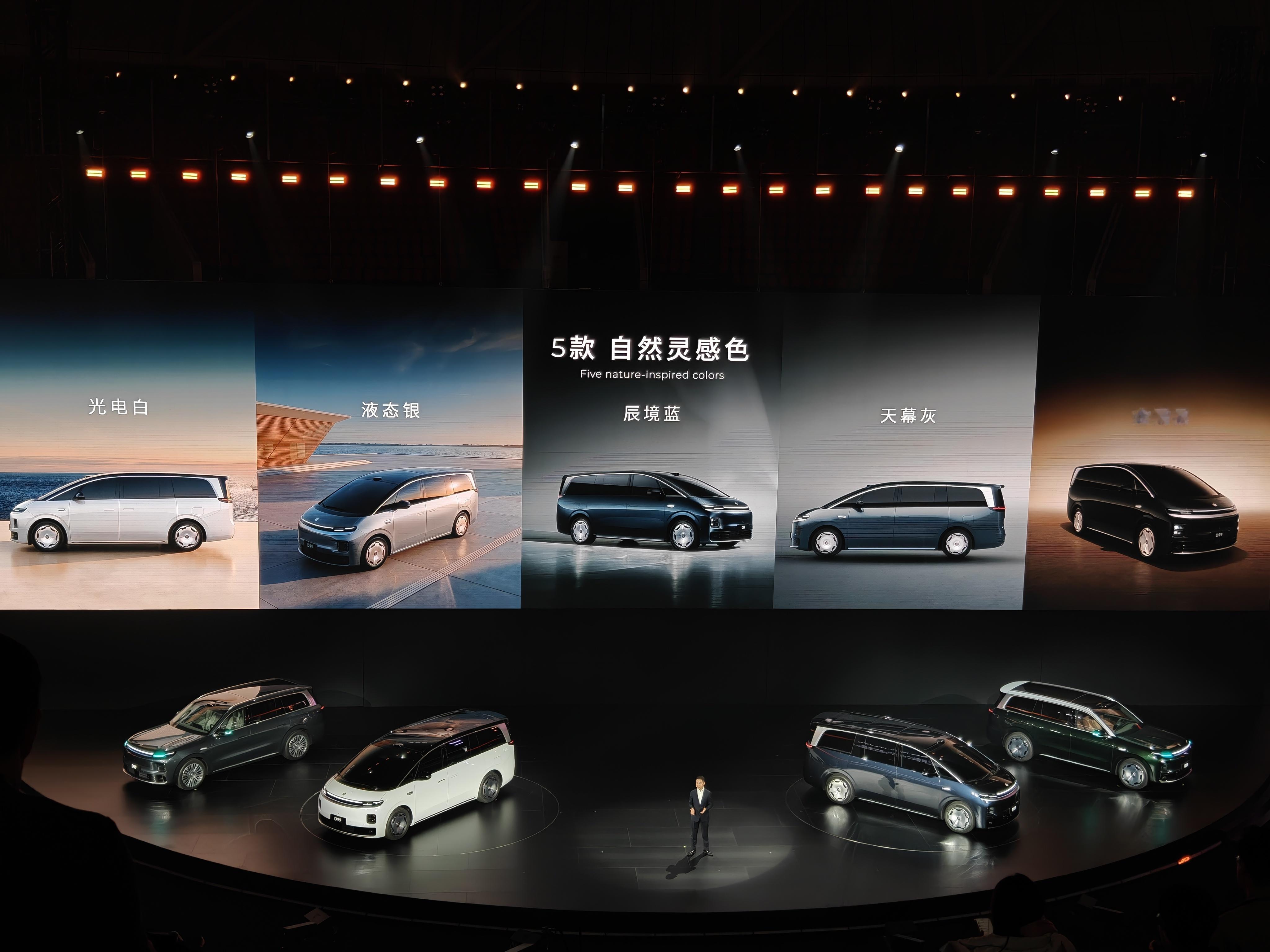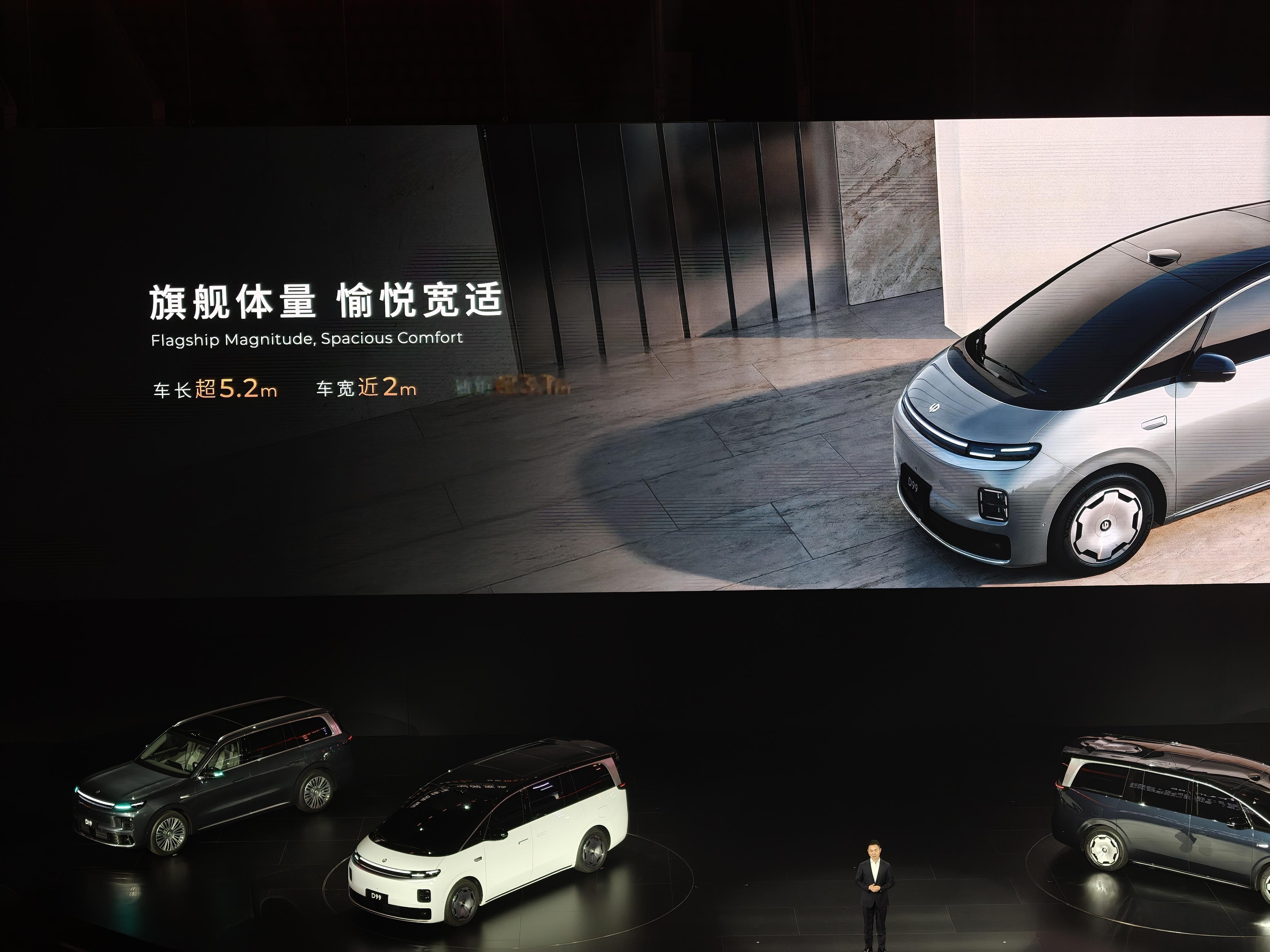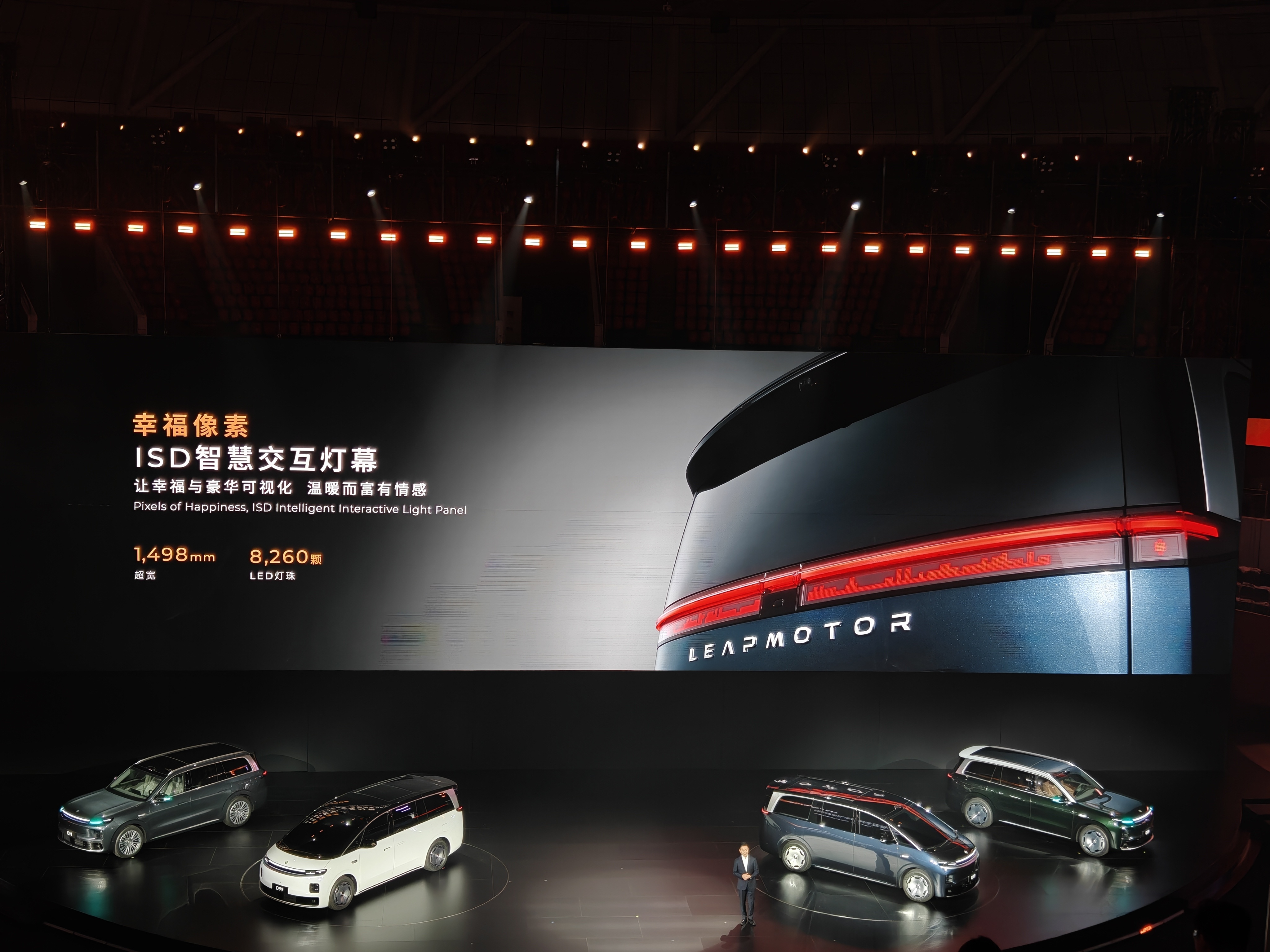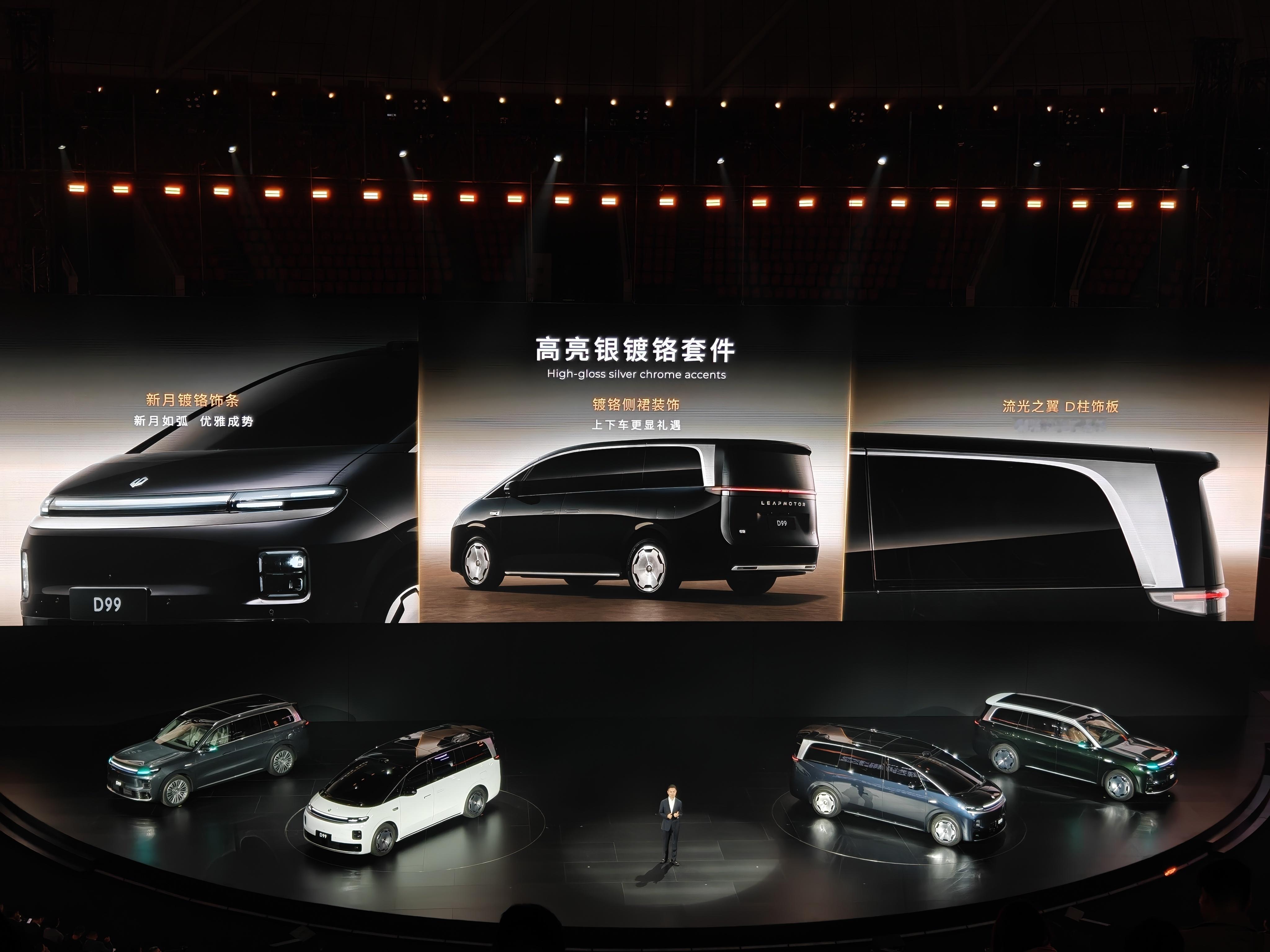 零跑9系豪华双旗舰同台首秀 零跑已经率先公布了旗舰MPV车型D99的部分信息。首先是车型尺寸,D99车长超5.2米、车宽近2米,轴距超3.1米。其次造型上采用了类似理想MEGA的低风阻设计,前舱很短,但是后悬比较长。设计细节都沿用了零跑D19的元素,包括三段式LED灯组、投影大灯、纯平车窗、交互贯穿尾灯。另外就是新车采用了19英寸轮毂、三片式全景天幕。颜色包括五款,还有大面积的镀铬饰件。动力总成方面也是增程和纯电两个版本,同样都是三电机四驱,后驱采用矢量双电机方案。同时增程是800V、80.3度电,而纯电是113度电的1000V高压平台,或许续航会比零跑D19更长一些。D99车身扭转刚度可以达到46682Nm/度,双腔闭式空悬和连续可变阻尼减振器,还有前四活塞卡钳。其余配置方面包括双9797芯片、1280TOPS、端侧AI大模型、VLA智驾大模型。汽场全开大v聊车