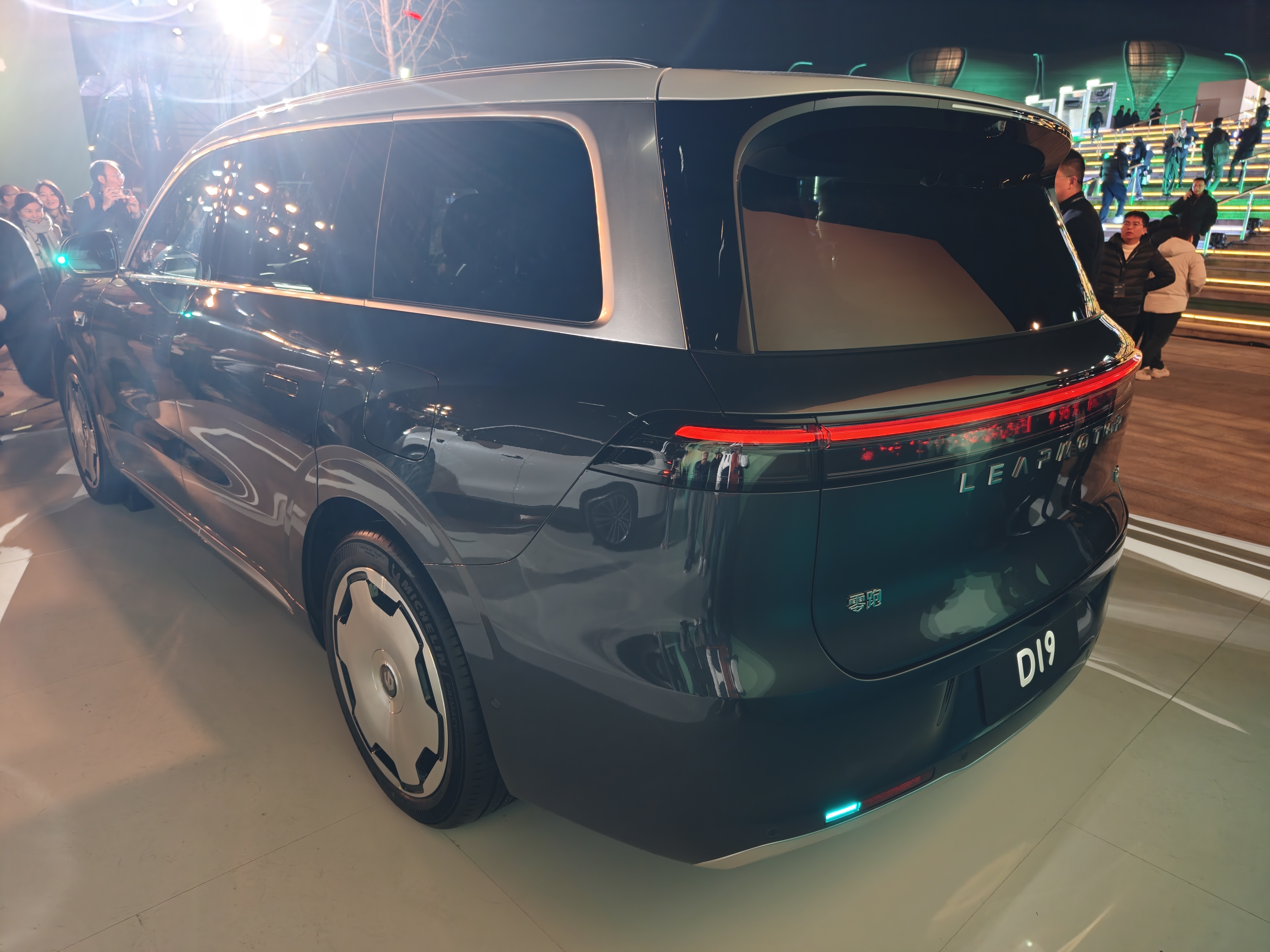 第一次看零跑D19这款车,外观确实大气,而且21英寸的大饼轮毂比不少品牌做得好。前脸贯穿式日行灯挺好看,车尾的小蓝灯位置太低了,不知道为啥。双色车顶做出了双色车身的感觉。内饰是典型的理想风格,还没准打开门看。零跑10周年汽场全开大v聊车