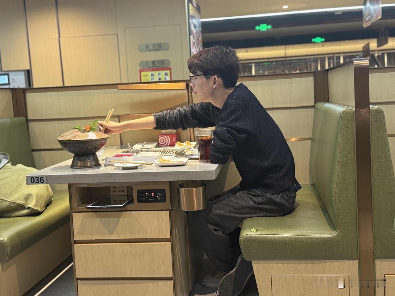 一隅餐桌 餐厅里暖黄的灯光揉碎在金属镶边的卡座上,男孩独自坐在桌前,伸手去够桌中央的料理碗,动作从容得像在打理一件寻常小事。 他周身没有随行的人,也不见低头刷手机的匆忙,只是安安静静地摆弄着餐具,对着精致的火锅料理慢条斯理。桌上的饮品杯身印着品牌标识,餐具与器皿的质感透着精致,卡座旁的置物区还搭着一件质感软糯的外套,细节里藏着不刻意的讲究。 旁人见了,随口一句“不是官二代就是富二代”,可我看着他独处的模样,倒觉得这判断未免潦草。真正的优渥从不是身份的标签,而是这份在独处时依然能把生活过得妥帖的松弛感——不必借旁人的热闹填充时光,也不因孤身一人就敷衍一餐饭。 餐桌一隅的他,不过是把对生活的认真,融进了这一顿简单的单人晚餐里。