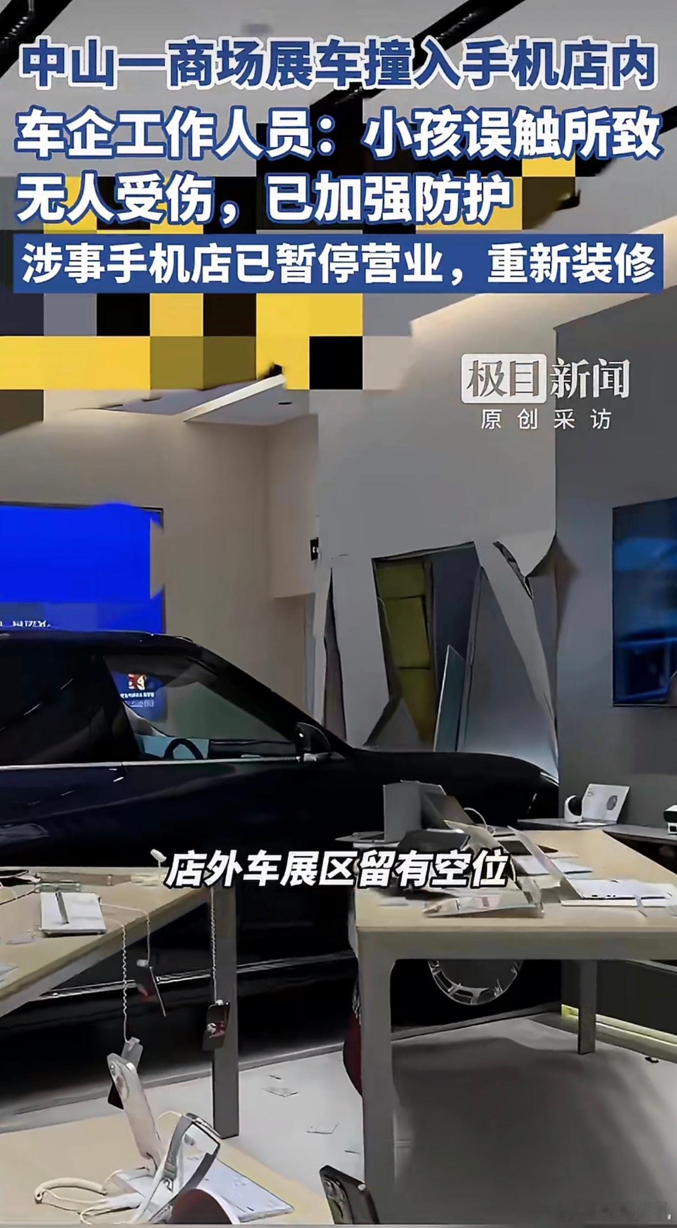 商场展车被小孩误触撞入手机店按说车企的展车都应该开启展车模式啊,小孩都能直接误触开车这有点离谱。工作人员称当时有人关闭了展车模式,加上小孩可能误触了相关操作部件,才引发事故。你们怎么看这件事儿商场展车被小孩误触撞入手机店