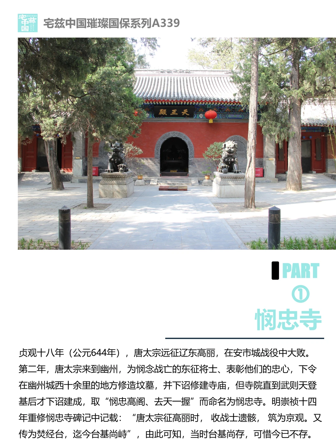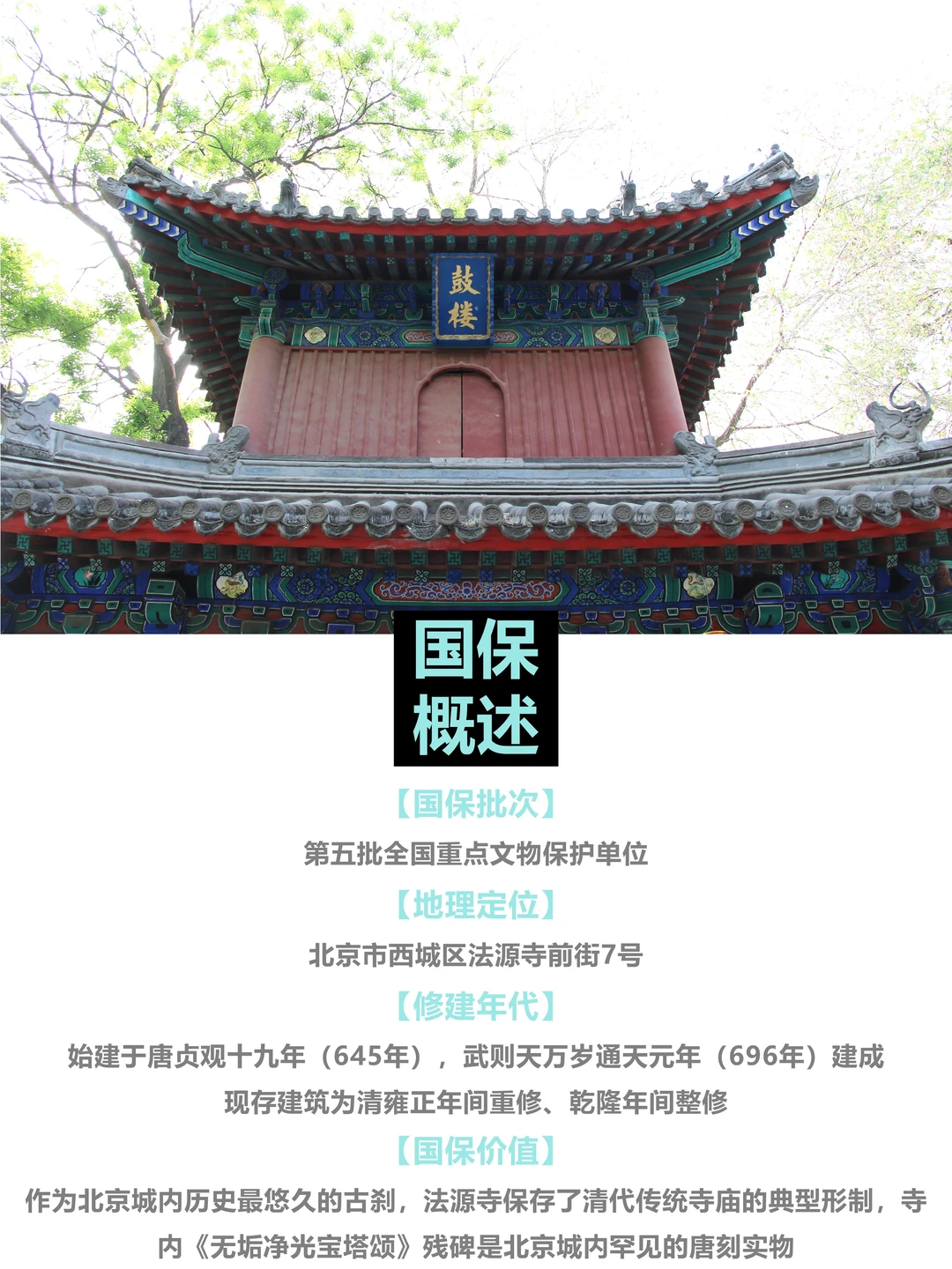 贞观年间,唐太宗远征辽东高丽大败,为悯念战亡的东征将士、表彰他们的忠心,下令在幽州城西十余里的地方修造坟墓,并下诏修建寺庙,但寺院直到武则天登基后才下诏建成,取“悯忠高阁、去天一握”命名为悯忠寺。寺中唐碑《悯忠寺宝塔颂》记录了史思明对安禄山的谄媚。金攻克东京后,宋钦宗曾关押于法源寺。作为京城古刹,辽代帝后多曾在寺内建道场,明朝多次修缮,雍正时改为律宗寺院,皇帝赐名法源寺。目前寺院建筑为清时重建重修。全国重点文物保护单位 寺庙旅行 法源寺
