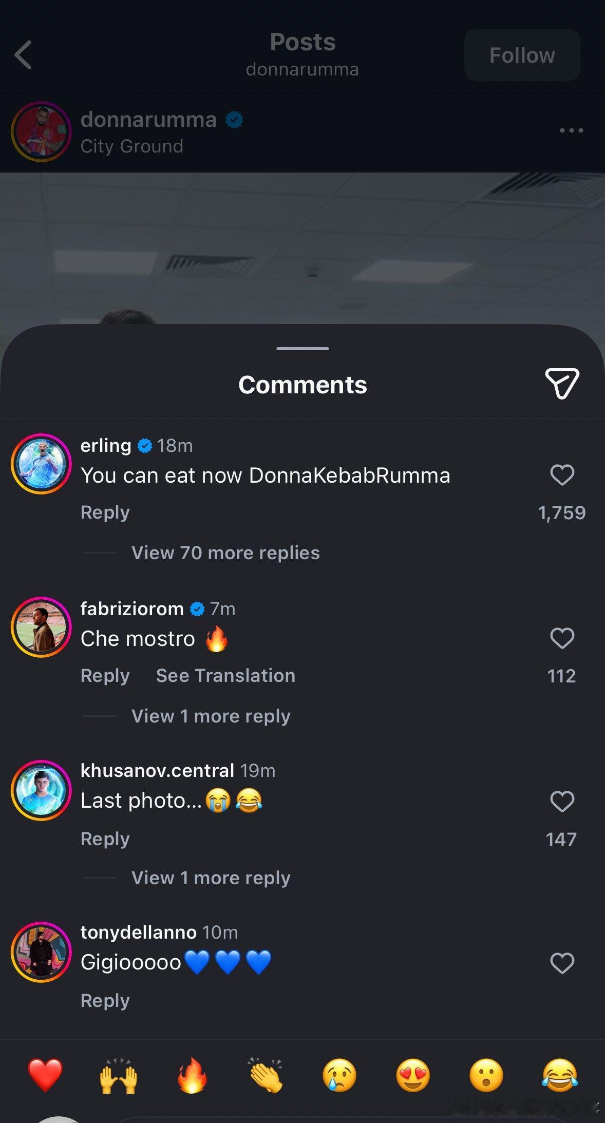 曼城2-1战胜森林后,多纳鲁马晒自己称体重的照片(AI图)庆祝胜利,配文:“2025年圣诞节:3分到手,体重检测也通过啦 ✅”哈兰德评论:“多纳烤肉鲁马,你现在可以开吃啦!”🤣