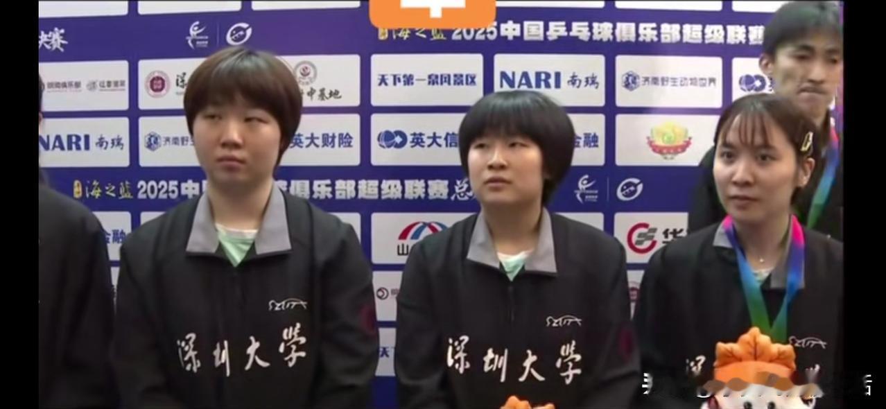 有人说孙颖莎可以走了。她不在,深大也能拿冠军。 深圳大学只有四个人,如果孙颖莎