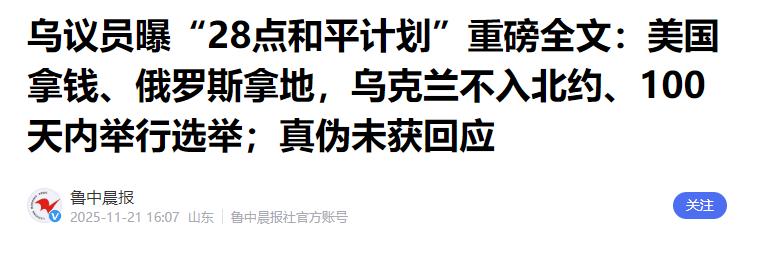 乌克兰简直太冤了!花了三年多的时间,硬生生把俄罗斯从一个全球超级大国打成了二流国家,解决了美西方的心头大患,可到头来乌克兰得到了什么?三年多的血火拼杀,把俄罗斯的国力拖得七零八落。   冲突持续了近四年,结局却不在战场上决定。一份迈阿密的和平计划草案,清晰地列出了最后的账单。   这份“28点和平计划”摆上桌面,让人们看清了在这场大国角力中,谁达成了自己的目标,谁又被耗尽所有价值,等待出局。   美国的目标是系统削弱俄罗斯,现在看,这个目标基本达成了。俄罗斯曾经那个全球部署军力的形象,经过三年多消耗,已经不复存在。   它唯一的航母在船厂里动弹不得,五代机迟迟无法量产,海外军事基地也从三十多个缩减到二十九个,影响力退回了周边地区。   经济上,西方的制裁和高昂的军费支出,占了俄罗斯预算的四成。它的经济体量在全球GDP中的名义占比,已经下滑到1.5%。这组数据,再也撑不起过去的大国地位。   芬兰和瑞典加入了北约,波罗的海的战略态势彻底改变。对美国来说,俄罗斯已被削弱,战略重心可以顺利转向亚太。迈阿密的和谈,正是项目收尾的信号。   这份战略上的成功,代价却由乌克兰支付。战前乌克兰有4400万人,现在只剩大约2800万。   超过一千万人流离失所,其中五百七十多万人逃到欧洲,还有三百七十多万人在国内流浪。兵员枯竭,征兵范围不得不扩大到老年人和女性。   联合国警告,乌克兰的生育率已经是欧洲最低,停火也无法挽回长期的人口危机。   近五分之一的国土沦陷,国家的经济命脉被切断。顿涅茨克、卢甘斯克、扎波罗热和赫尔松这些地方,埋藏着乌克兰七成的高价值矿产。   这些资源,一部分被俄罗斯实际控制,另一部分以5000亿美元的估值抵押给美国企业,换取军事援助。   国家主权也随之丧失,国债从227亿美元飙升至2300亿美元,翻了整整十倍,GDP萎缩超过三成。   全国六成的工业设施和基础设施被毁,曾经的“欧洲粮仓”需要进口粮食。世界银行估算重建需要5240亿美元,而这个国家连维持军队都需要外部输血。   西方的援助并非没有条件,欧盟承诺的900亿欧元重建资金,兑现缓慢,而且需要用资产担保。美国提供的武器,换来的是乌克兰战略资源的开采权。   就连美国最后提出的“安全保障”,也成为逼迫乌克兰在谈判桌上让步的条件。援助的目的很清晰,就是确保乌克兰能一直战斗下去,直到美国的战略目标完成。目标一旦实现,援助自然会大幅缩水。   这样的事情并不陌生,就像冷战时期的阿富汗。苏联撤军后,西方的援助也很快退潮,留给阿富汗人的是一个破碎的国家。   最终,俄罗斯保住了它想要的安全区,代价沉重。美国用最小的直接代价,遏制了对手。   只有乌克兰,在这场博弈中付出了全部的领土、人口、主权和未来,为一个遥远的目标耗尽了自己。 信息来源:《乌议员曝“28点和平计划”重磅全文》。鲁中晨报,2025年11月21日。
