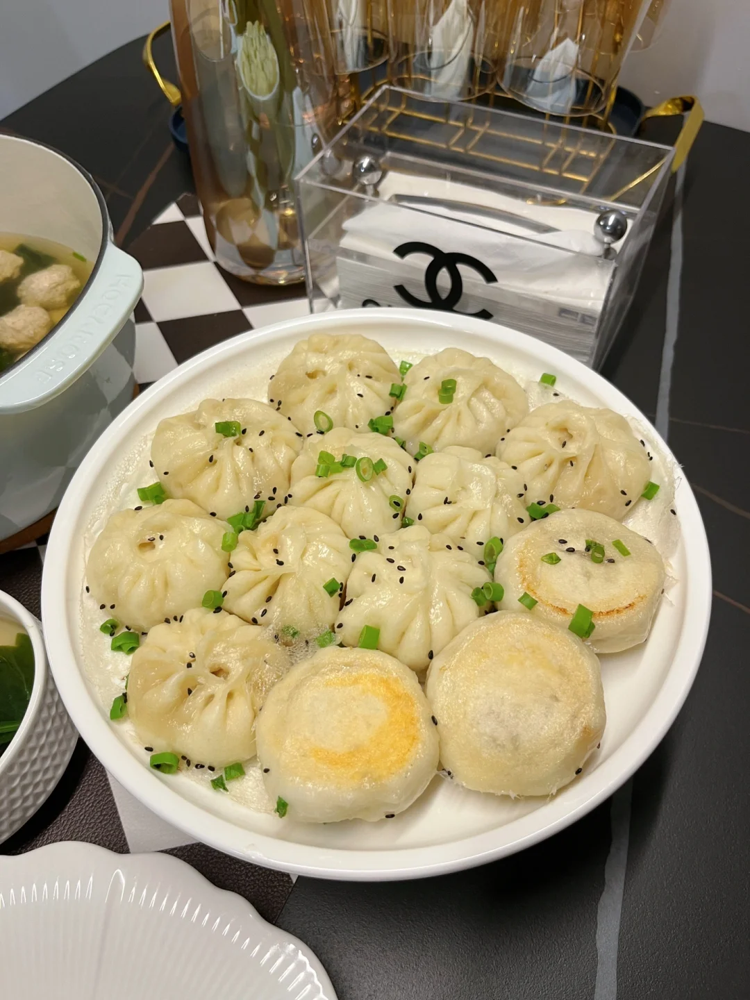 🥢生煎包:今天的主食就吃生煎包,松松软软的包子加上金黄酥脆的底~两口一个