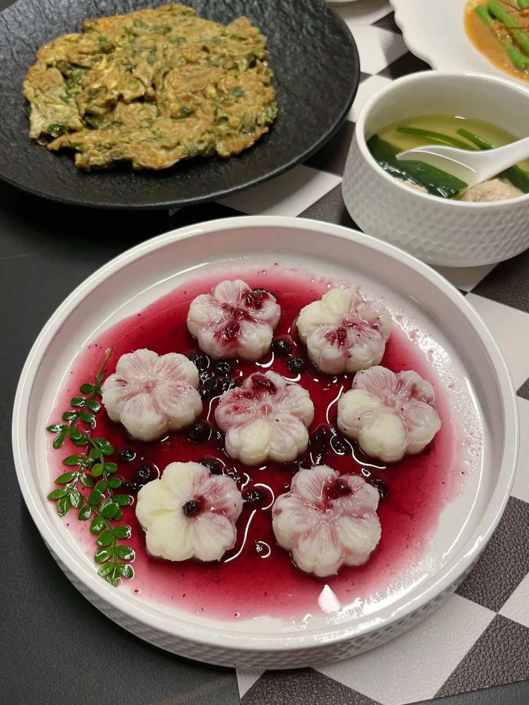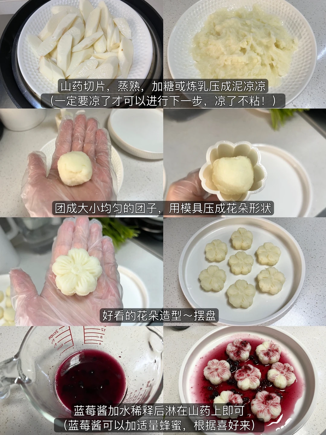 🥢蓝莓山药:我家餐桌上经常吃的一道菜,俗话说菜无定式,烹无定法,我每次做这道菜都很随意,炼乳,蜂蜜,糖,这些都可以根据自己口味来添加,当然只放蓝莓酱也很好吃~