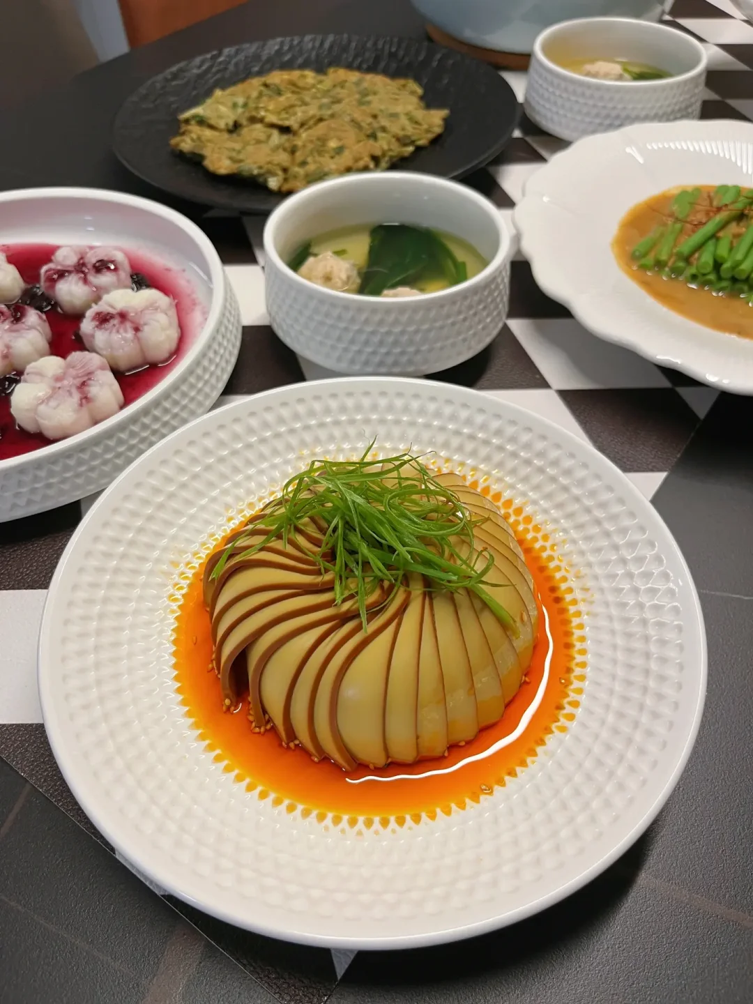 🥢红油鸡蛋干:吃饭的仪式感就是当然要摆个好看的造型~这时候需要一个小碗来辅助,淋上红油好看又好吃~