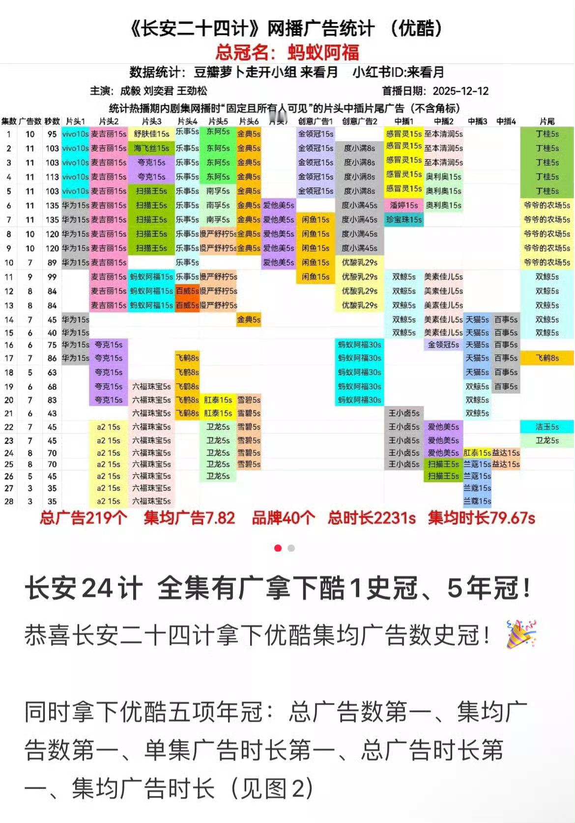 成毅长安二十四计创下的平台纪录:优酷集均广告数史冠,2025招商年冠横扫五项第一,IP联名史冠,周边销量史冠,抽卡销量史冠,☁️包场史冠。这都是实实在在的活人氪金和商业价值,千金难买一活人,活人观众和商业价值正是业内平台品牌方最需要的,而不是只有冰冷的数字。所以成毅才会创下连续三部剧横跨三个平台全集有广拿下多个招商年冠史冠的傲人战绩,真爆假爆业内还是很清楚的。