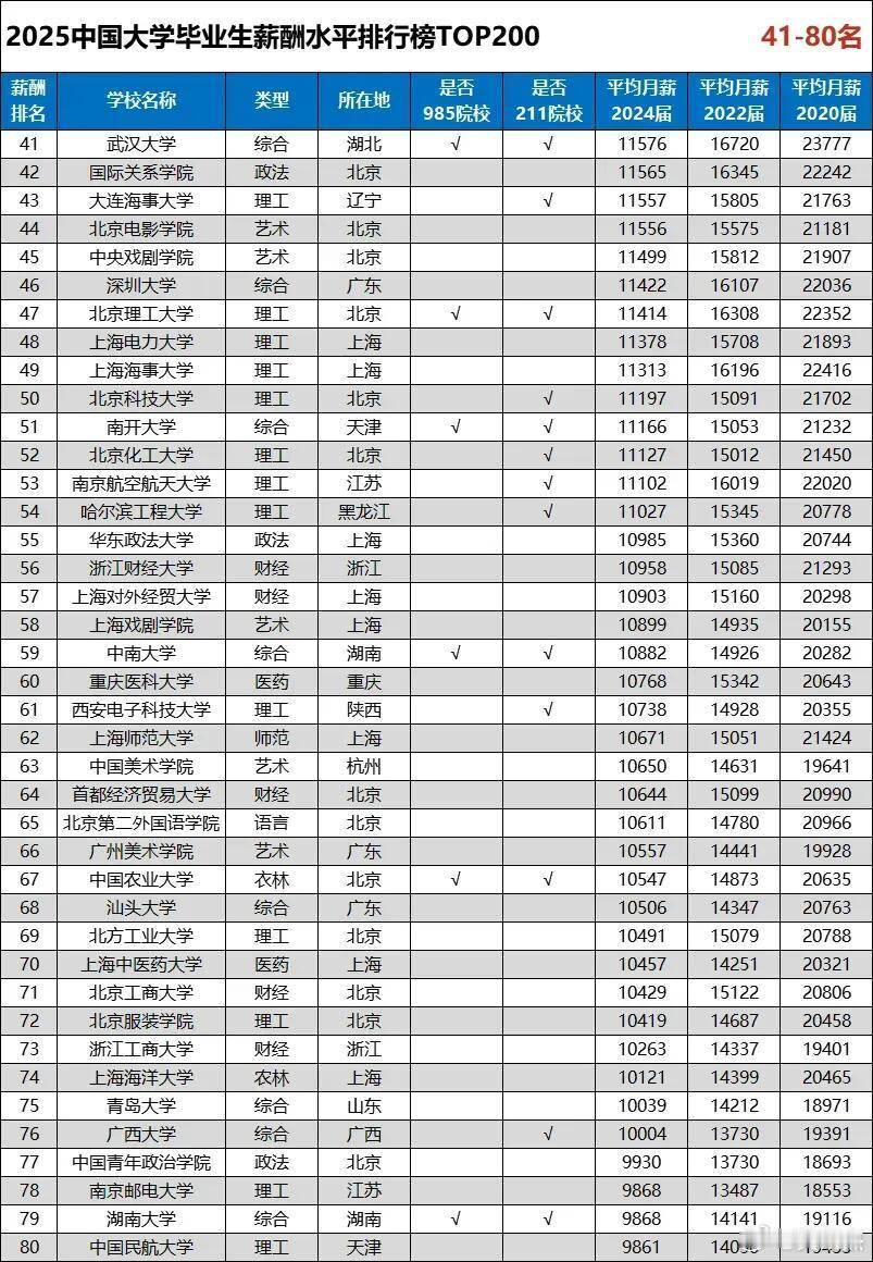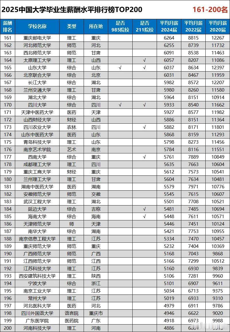 某网发布的《2025年全国高校毕业生薪酬排行榜TOP200》,为何2024年的薪资基本都比2020年的少一半?