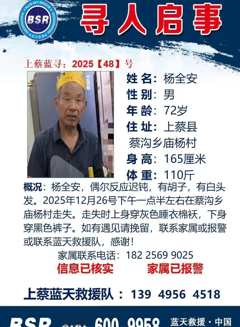 上蔡蓝寻【48】号走失人员信息已发布。上蔡蓝寻【48】号走失人员信息已发布、辛苦各位爱心人士转发扩散、感谢🙏