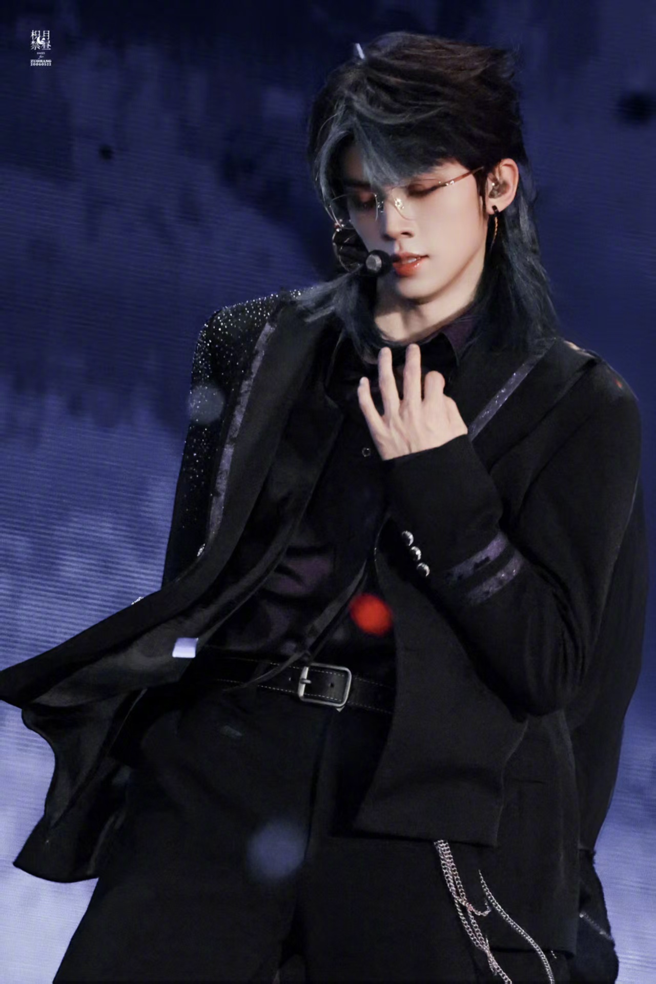左航戴了眼镜 新音第三天的造型直接封神,狼尾配蓝色挑染又野又酷,一戴上眼镜瞬间切换成斯文贵公子,帅得让人移不开眼。