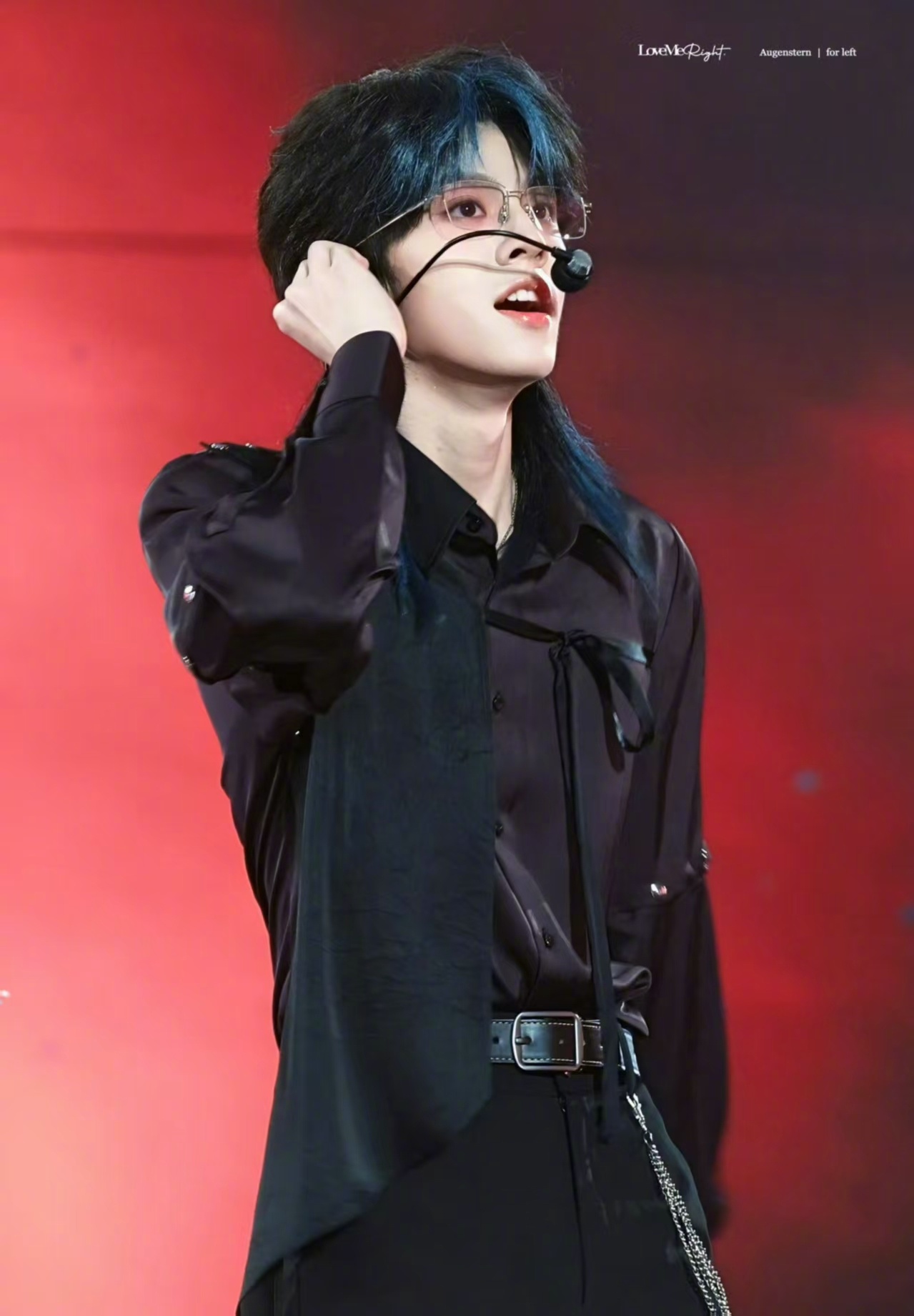 左航戴了眼镜 新音第三天的造型直接封神,狼尾配蓝色挑染又野又酷,一戴上眼镜瞬间切