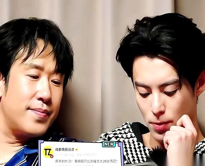 我算是看明白了,王鹤棣这小子是真敢说啊。 对着黄晓明直接来一句:“跟晓明哥你一起死,有点吃亏!” 哈哈哈哈哈,我当时一口水差点没喷出来。 事情是这样的,节目里排年龄,黄晓明48,刘耀文20,差了整整28岁。 黄晓明估计自己也觉得有点尴尬,就找补了一句,说他爸生他的时候,也正好是28岁。 你看,多好的台阶。 结果王鹤棣这小子,根本不往下走。 他先补一刀:“你俩中间,刚好差了一个我!” 然后就扔出了那个“一起死有点吃亏”的炸弹。 绝了。 晓明哥那张脸啊,想发火又得憋着,想笑又觉得扎心,简直是表情包素材库当场更新了。 但说白了,这事儿好笑就好笑在,黄晓明的脾气是真的好。 他就像咱们身边总会有的那种老大哥,兜里有糖,心里有海,你开多大的玩笑他都接着。他要是但凡玻璃心一点,这节目当场就录不下去了。 一个真敢说,一个真能忍。 这种一个愿打一个愿挨的场面,比剧本有意思多了。 感觉就像看见我自己那帮损友在电视上打打闹闹,特真实。