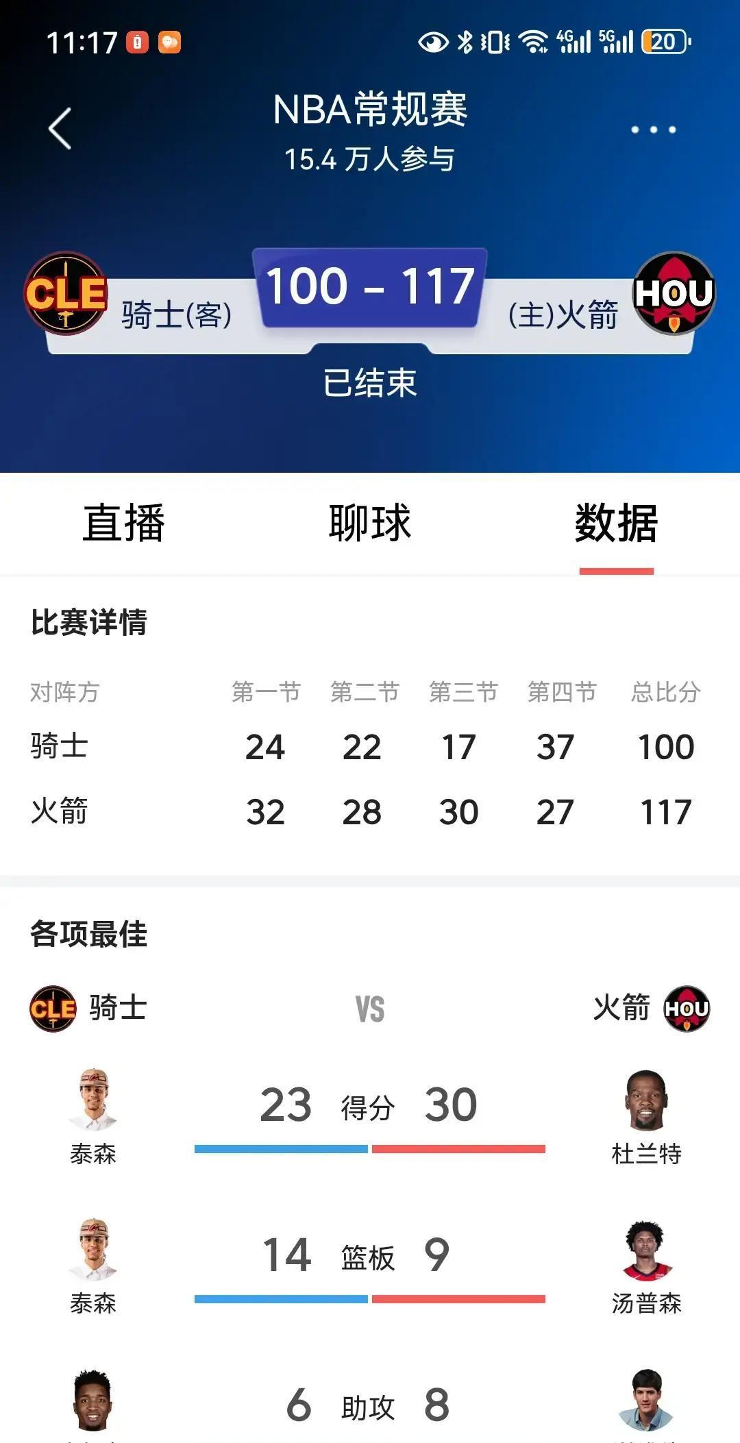 差162分,杜兰特今晚又刷25分 骑士少了米切尔,火箭五锋直接把三分掐到31%。伊森复出抢3断,骑士双塔被无限换防困死。 杜兰特三节25分,真实命中率62%。按这速度,6场后就能超张伯伦。抢断也差1次进历史前百,下一场打马刺大概率双喜临门。 火箭主场胜率68%,后面5场4个主场。骑士背靠背打鹈鹕,东部第七的椅子开始晃了。