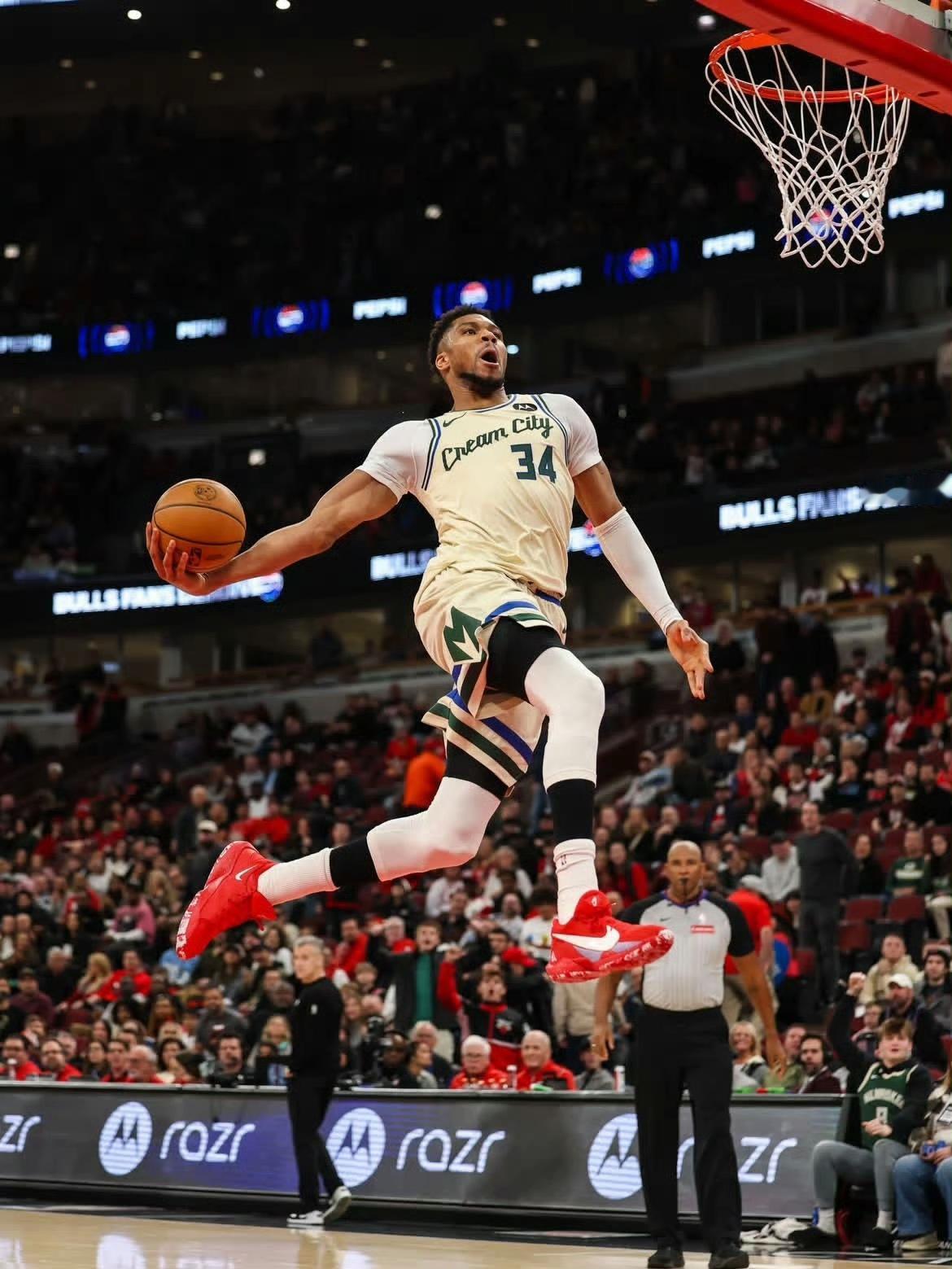 在比赛失去悬念的情况下,字母哥最后一攻表演大风车扣篮,引发公牛球员不满,双方赛后爆发冲突。 字母哥有点不厚道吧,在赛后社交媒体还晒出了扣篮的这个照片! 而且字母哥回应最后大风车:我们又不是卫冕冠军,为啥一定要耗完时间。