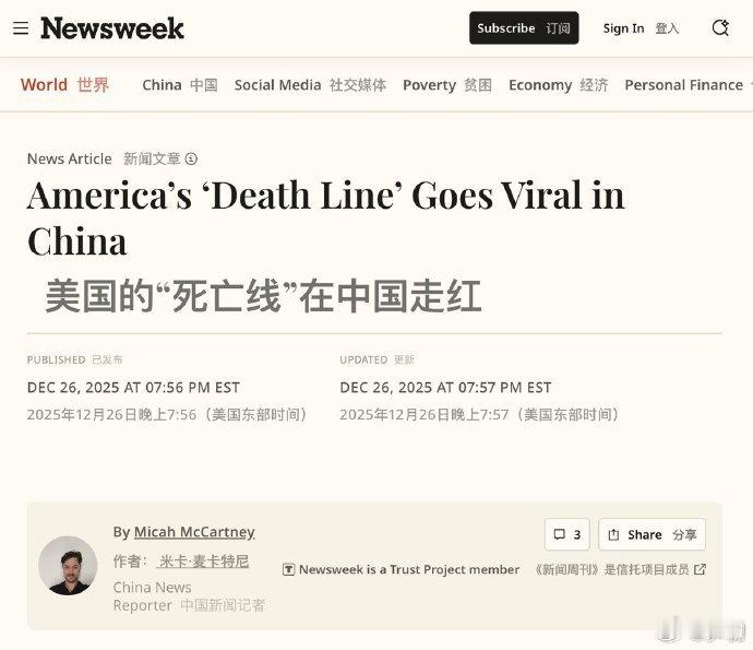 美国《新闻周刊》:美国斩杀线 在中国走红。文中一名居住在美国西雅图的华人表示,对于总收入低于10万美元的家庭来说,“除非没有房租或房贷,也不需要医疗保险,否则生活非常艰难......大多数美国人没有缓冲—如果他们失业、生病或离婚,他们很快就会陷入危机。”最搞笑这位居住在西雅图的华人在小红书写的关于美国斩杀线的内容,被举报删帖了!你看,美国人没急,二鬼子是真急了,都跑到小红书上去举报了。