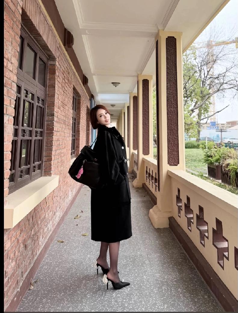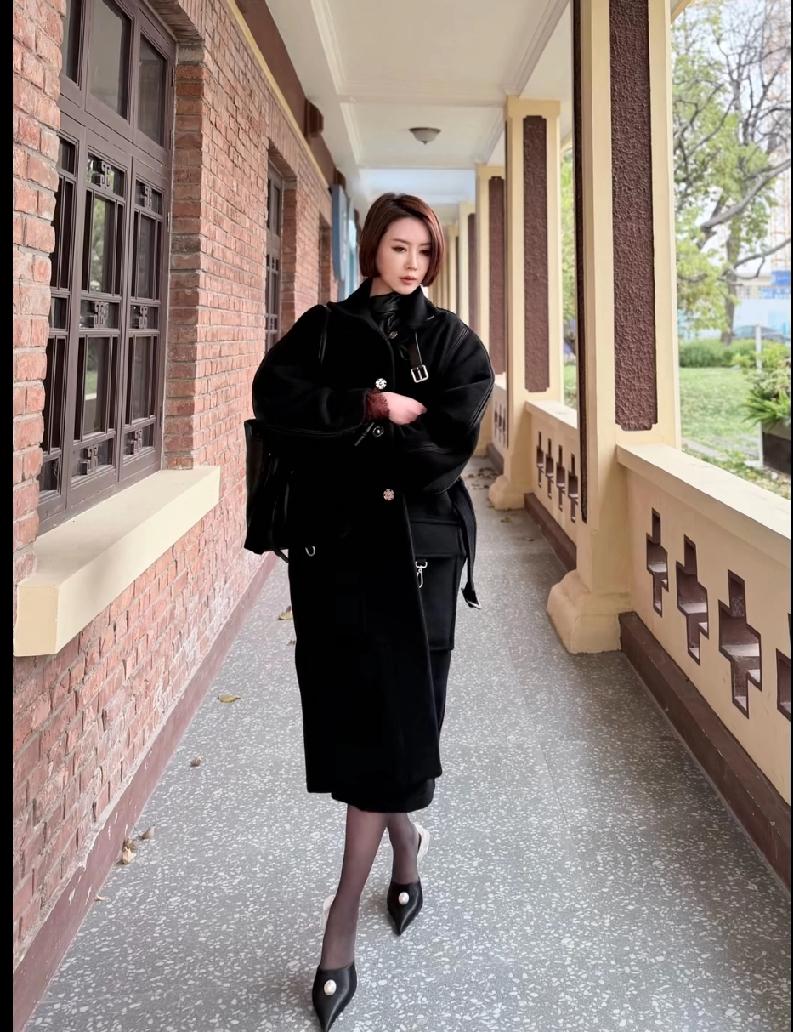 美图欣赏,看图写诗 《街隅倩影》 石墙倚影黛眉扬,黑袂翩跹步锦坊。 车中闲