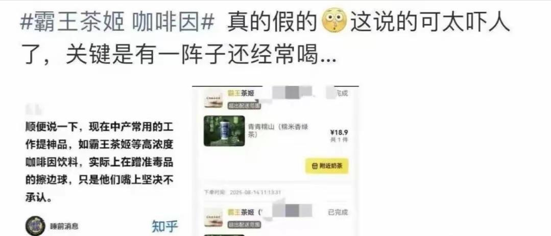 喝个奶茶居然比功能性饮料更猛! 奶茶含糖量高,多喝易胖也都忍了,谁让咱好这一口春夏秋冬的第一杯仪式感呢! 可万万没想到,奶茶还有能比咖啡更牛,“提神”都只是打底,更有甚者还能“隐蔽成瘾”。 以后还是自己烧水喝吧,安全、放心。实在馋了,就再加点白砂糖甜一甜! 奶茶危害 霸王茶姬因“咖啡因”登上热搜