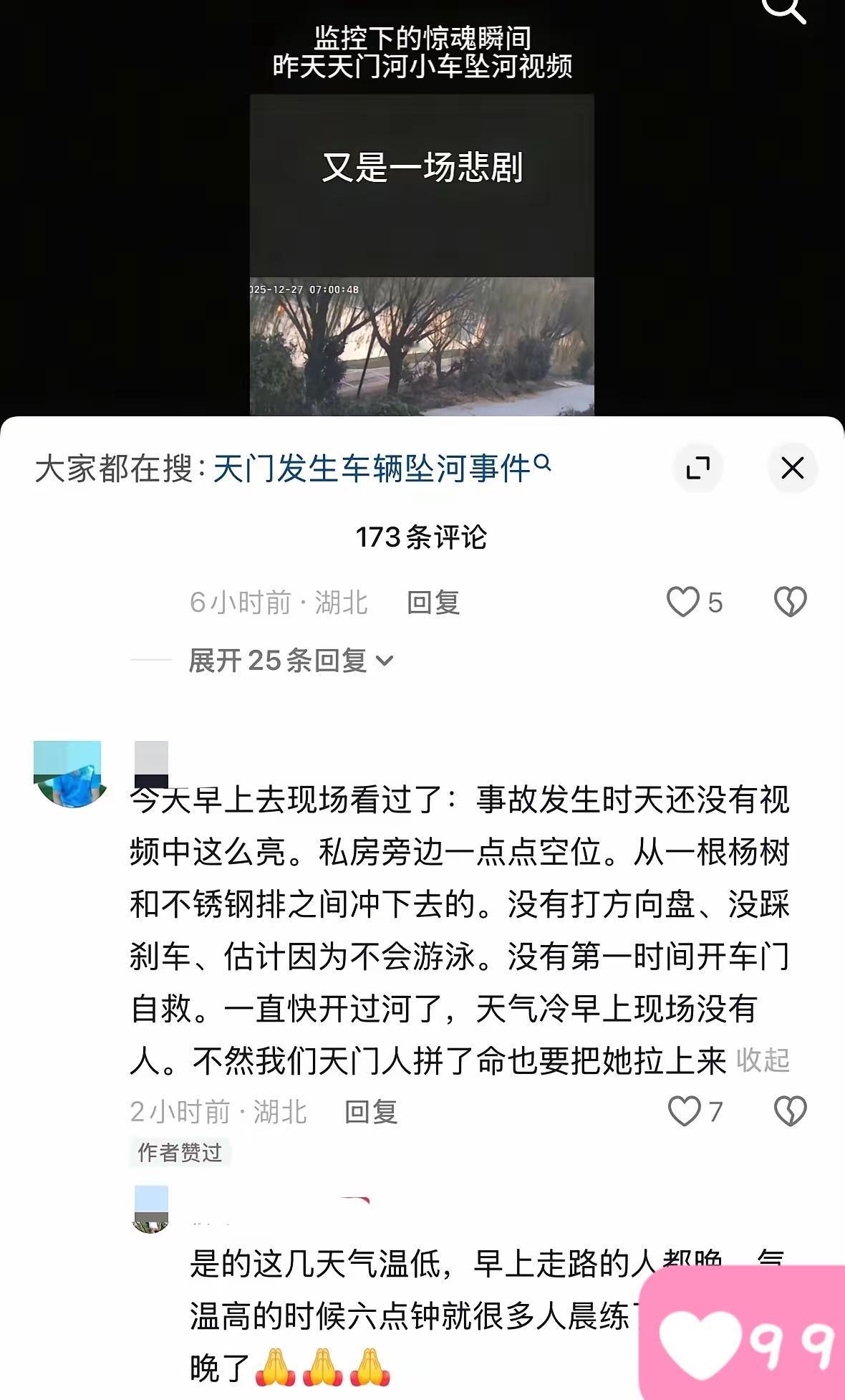 湖北天门,一个才26岁的姑娘,开着新能源车冲进了河里。她驾照刚到手没多久,那天早上正赶着去上班。谁能想到,半路就出了事,人没了。 早上七点,天刚亮。接官路上车子不多,她的车却直直冲过岸边,栽进了星星大桥旁边的河里。附近店老板说,就听见“砰”一声响,跑出去看,水面上只剩车灯的光在晃,然后慢慢暗下去。 她才26岁。这个年纪,可能昨天还在和朋友计划周末去哪玩,可能在烦恼工作上的小事,可能对刚买的新车充满新鲜感。一切都没了。车从水里捞上来时,一切都晚了。 问题出在哪儿?一个新手上路,对车还不熟。遇到紧急情况,脑子一懵,错把油门当刹车踩到底——这种事儿太多了。去年有个新闻,一个女司机刚出车库就撞墙,就是油门当刹车。这次更让人难受的是,路旁边就是河,可护栏呢?没拦住。 再说这新能源车,电池装在底下,一泡水,救援都麻烦。不是说要怪车,但普通人真不了解这里面的危险。一旦掉进水里,电路一短路,门窗都打不开,逃生时间比燃油车还短。今年夏天有辆车滑进河沟,人都跑出来了,但车废了,就是电池泡了水。 看看网上那些留言,很多人都在问:“路修在河边,为什么不把护栏弄结实点?”这话问得心痛。哪怕就多个几十公分高的结实水泥台子,可能结果都不一样。一条命,换不来一个护栏吗? 更让人难受的是细节。有人找到疑似她的社交账号,前几天,她还在发动态,说着对年底的期待。普通人的生活,普通的愿望,转眼成空。留下她的家人,怎么接受这个结果?不敢想。 说这些不是为指责谁,是希望这样的悲剧别再出了。新手司机需要更多练习,别急着独自上路。有关部门看看那些危险路段,该加固的加固。车商也多想想,落水了怎么能给人多留几秒逃生的时间。 各位读者你们怎么看?欢迎在评论区讨论。