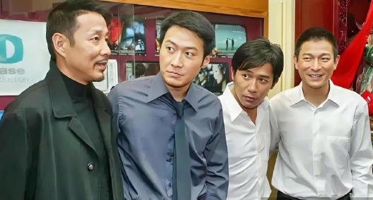 陈道明当年真是让四大天王都敬佩的演员,毕竟人家是皇帝专业户,私下里也是看起来很有城府的大哥。 看着黎明,梁朝伟,刘德华的眼神真是充满了敬佩。