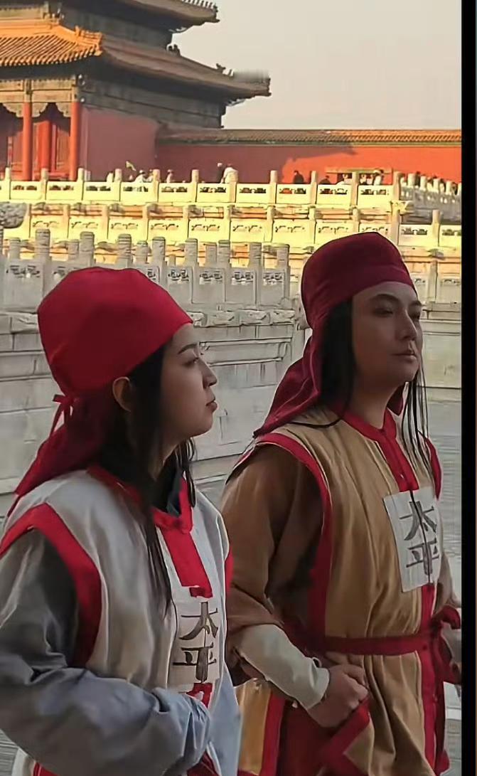 故宫见过汉服、西服、格格服,就是没见过天国服,这两位游客填补了这方面的空白! 初看觉得可笑,细看竟毫无违和。太平天国是清末的农民起义,被定性为反封建的正面运动,人民英雄纪念碑也有其运动群像雕塑,尽管运动最后以惨败收场,但他们用打下半壁江山的战果证明,所谓的清廷并非不可战胜,为后来的革命事业打下了基础。 所以说,大家看到这样的服装,不必觉得违和,甚至自卑,要有勇气正视历史!