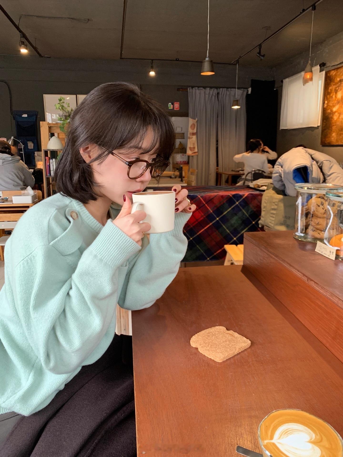 光之影元气少女自拍,黑发红唇,甜美笑容,花边毛衣,黑蝴蝶结发饰,清新自然。自