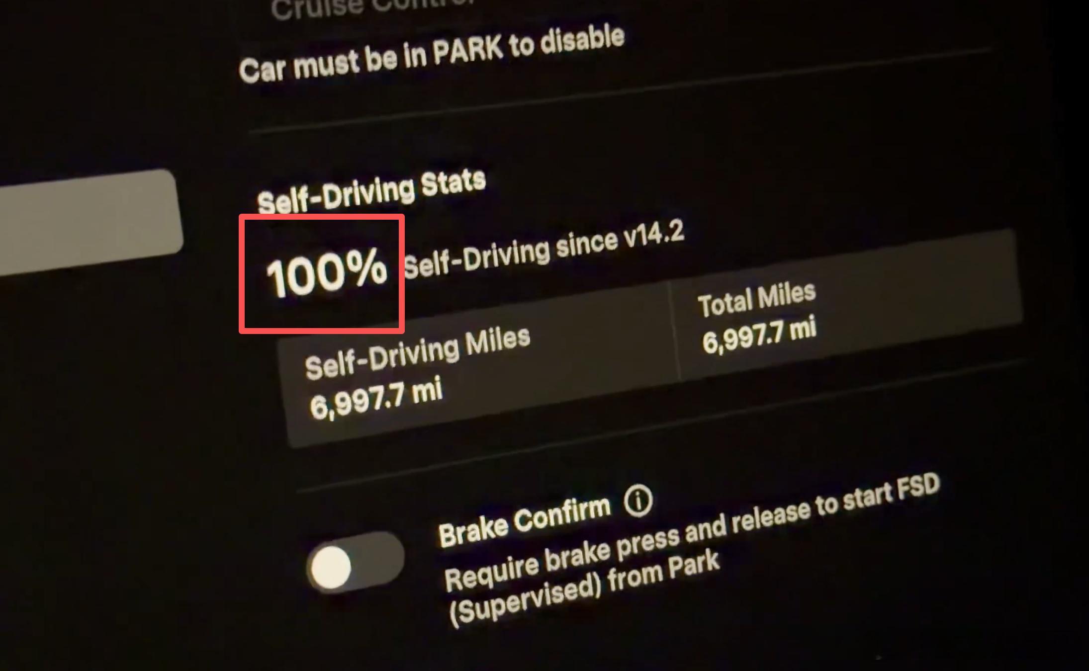 刚看到一个美国网友他的FSD使用率是100%,并且快7000英里了很厉害……车和