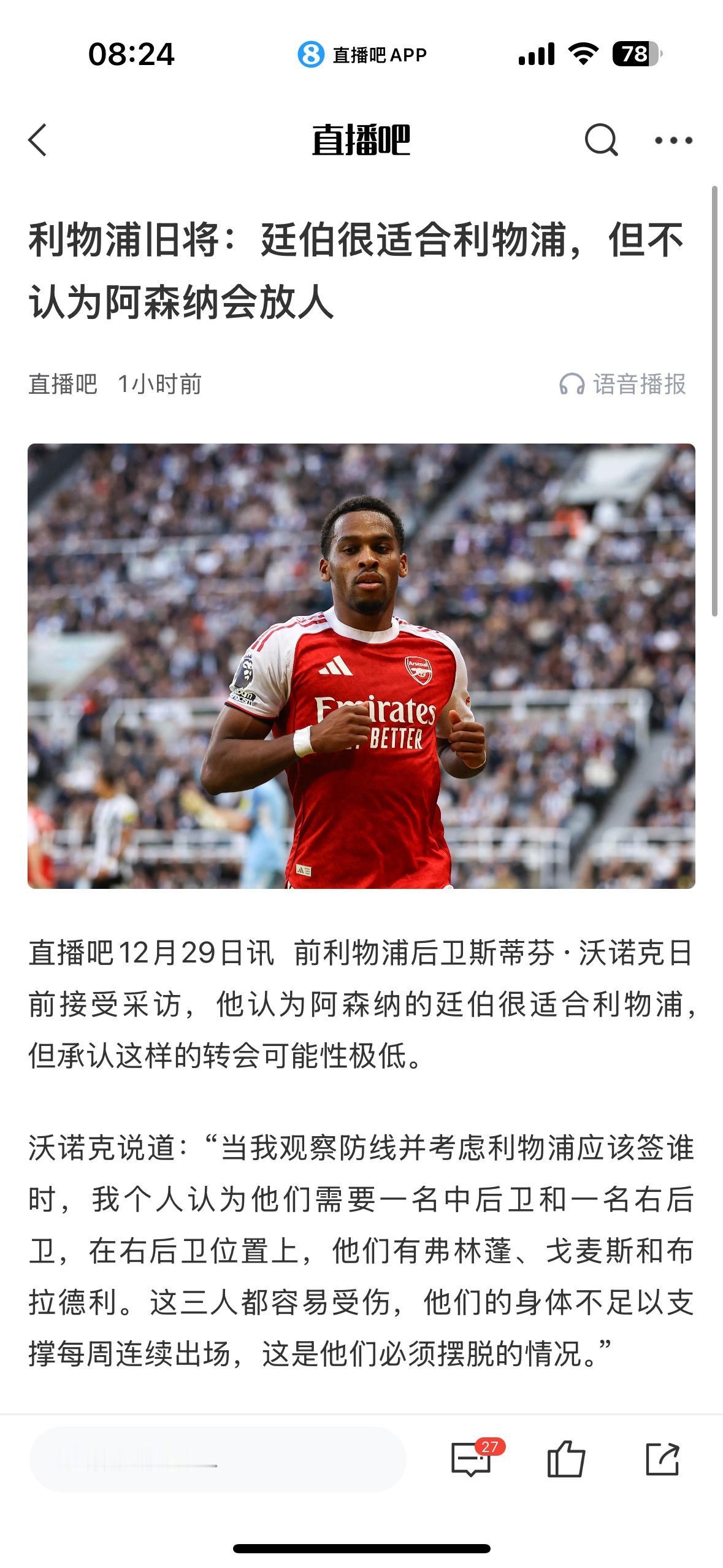 利物浦居然想买阿森纳球员,这真是奇幻。 参考之前凯恩,热刺不准他加盟英超豪门,只能去其他联赛踢球。 何况延伯还是后卫,阿森纳后防确实厉害,利物浦都来买他们替补了。[6]