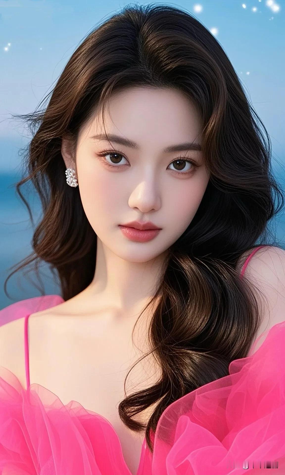 玫粉纱裙映碧海,卷发垂肩缀钻饰藏明艳 海边氛围感长裙 度假风沙滩长裙 海滩金裙韵