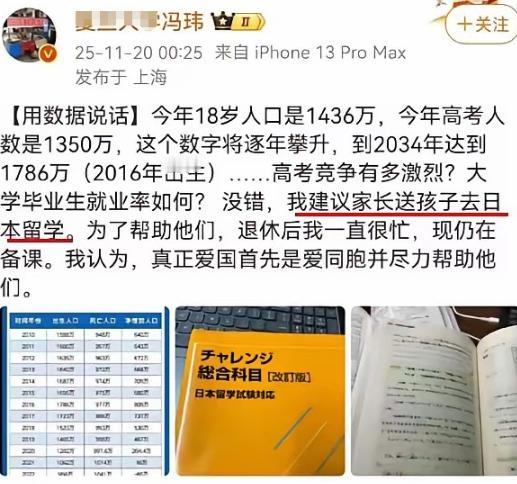 就当国家呼吁咱们这段时间谨慎前往日本的时候,复旦大学教授表示:现在前往日本就是”爱国“的表现。 首先我们要清楚,这位教授为什么说现在前往日本是“爱国”的表现,原因很简单,那就是在这位教授看来,前往日本学习知识后,回来建设祖国。 咱们说句实在的,他说的这些话确实没什么问题,但有问题的是这个时间段真的适合前往日本吗?说白了,现在前往日本能不能学到知识不知道,但可以肯定的是,人身安全大概率会受到“威胁“。 毕竟现在日本什么样子大家应该都清楚,并且现在的日本政府并没有想要解决中日冲突的意思,所以中日战争都有可能瞬间爆发,这对那些在日本的同胞而言,大概率不是什么好事。 所以咱们现在就听国家的话就可以,毕竟国家是不会害咱们的。