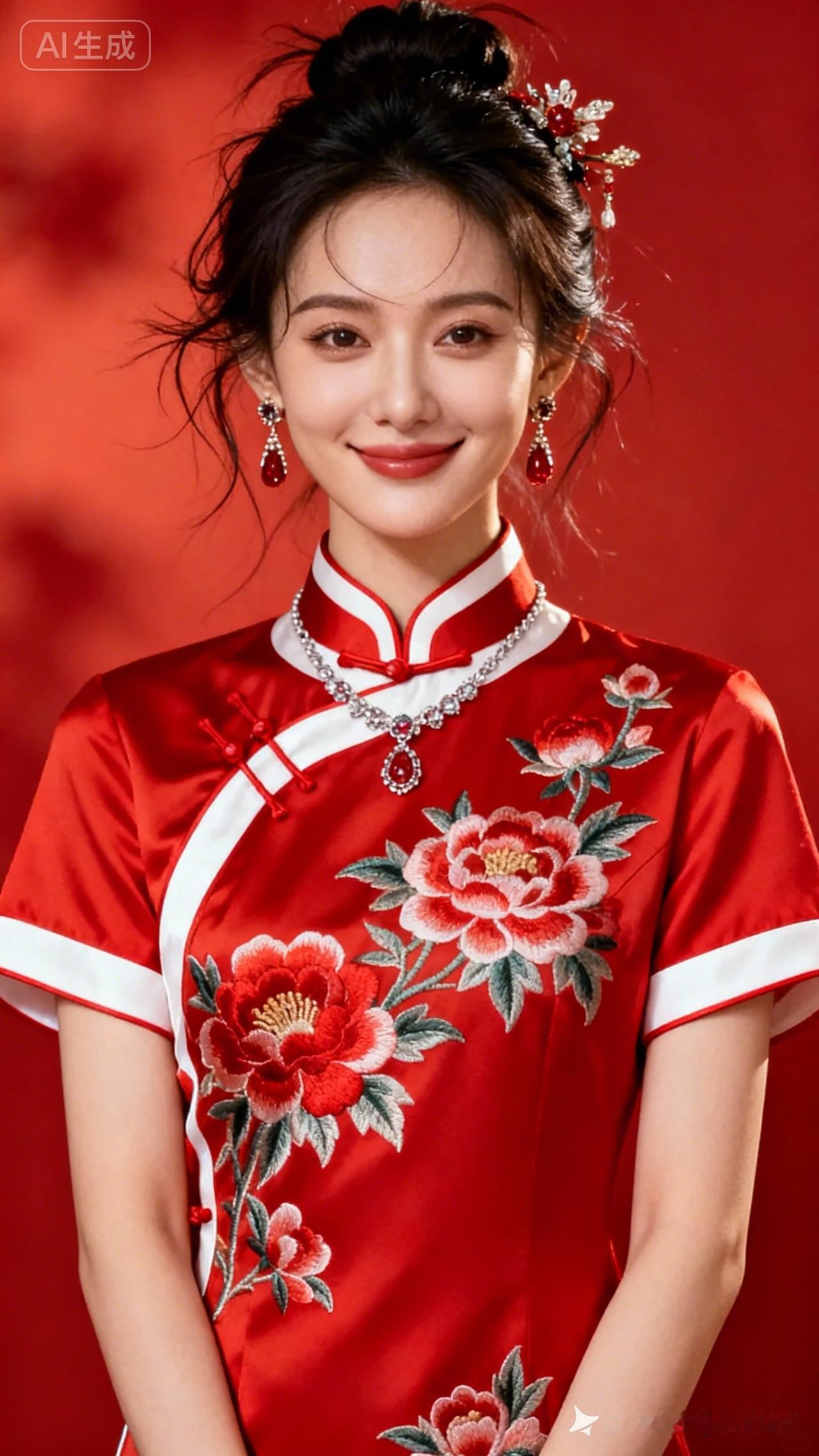 惊艳的东方美人,红衣花枝招展,尽显古典韵味!🌸💃🏻
