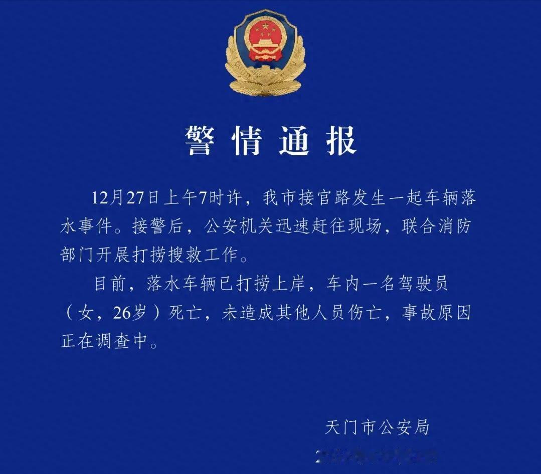 新手女司机,新能源车,落水,这是叠了多少的BUFF,造成如此的开车落水身亡事故。 12月27日早7时许,湖北天门一26岁女子,驾照才到手,新能源车也才到手,不知何故,突然开车冲出马路,连续越过绿化带、人行道和护坡,直接坠入河中。 女子何时失去意识,是在马路上,刚坠入河中,还是被水淹没后,已无人知晓。 可惜的是,落水后,女子也没有找到自救的办法,最终身亡。 网上科普的车辆落水自救方法,并没有发挥作用,大约是因为实际情况千变万化,理论与实践的差距太大。 而且如果是女子自身开车冲入河中,又没有买驾乘意外险,保险赔付也会十分有限。