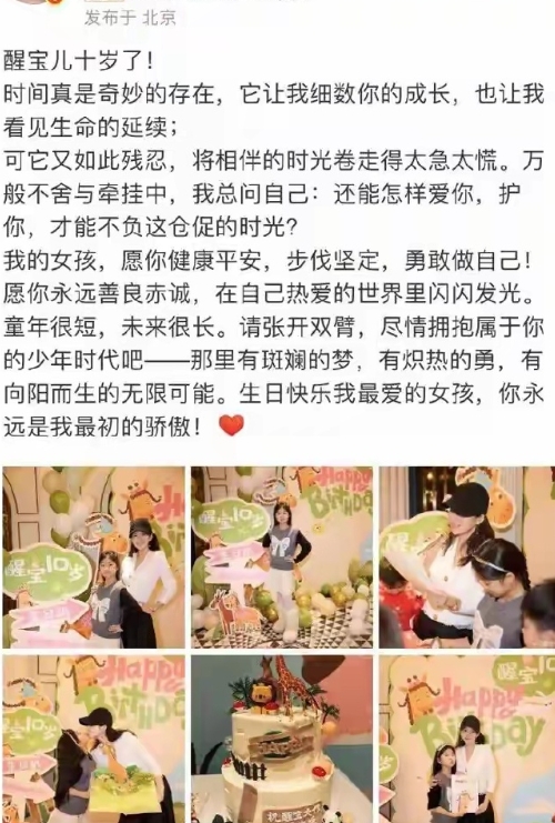 章子怡发文为女儿醒宝庆生,十岁了,和妈妈长得越来越像