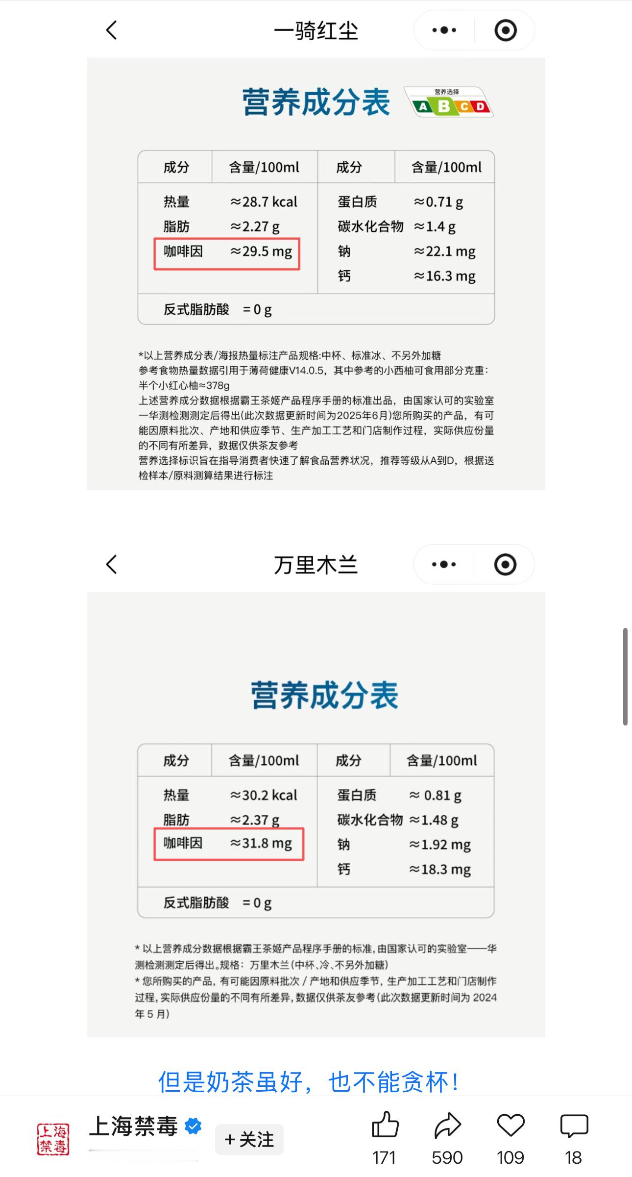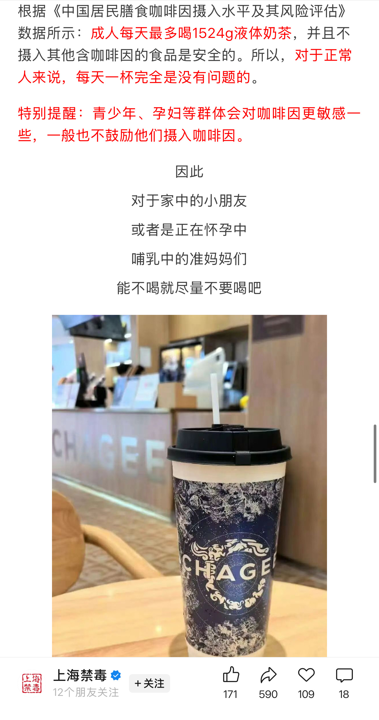 上海禁毒:抛开剂量谈毒性都是耍流氓目前市面上的咖啡因饮品都有严格的添加剂标准对于“将奶茶比作准毒品”的言辞,大家切勿相信。但也不要因此放松对于毒品的警惕。所谓“只是含咖啡因而已”“跟奶茶一样安全”的“提神神器”都是不法分子忽悠你上当的鬼话拒绝毒品,从拒绝诱惑开始!上海禁毒回应霸王茶姬咖啡因争议热点观点 上海禁毒回应霸王茶姬咖啡因争议