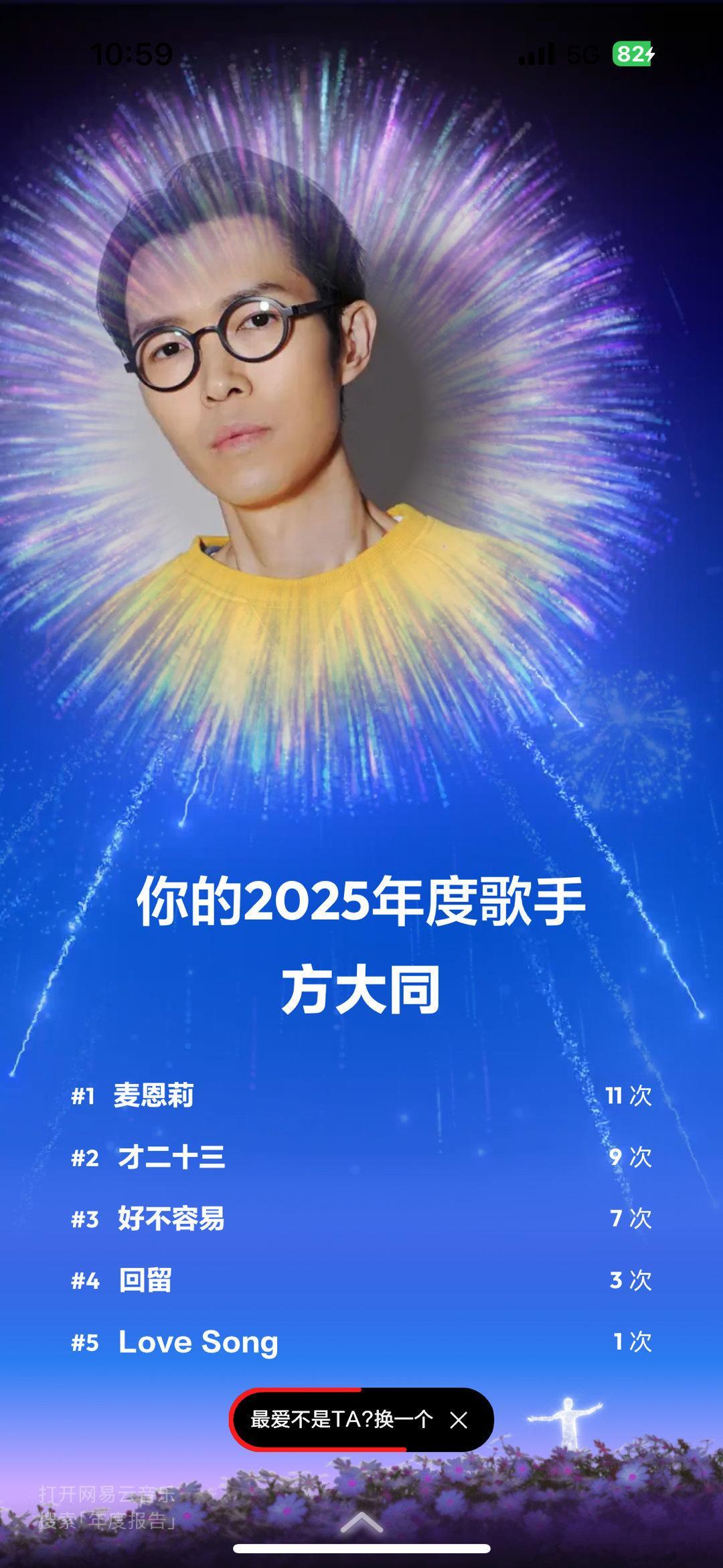 年度歌手 方大同谁的年度报告被网易云音乐、QQ音乐戳中泪点了?当“你爱的TA变成了星星”的文案搭配漫天星空动画弹出,无数用户瞬间破防:“心猛颤了一下,眼泪根本止不住”。这份跨平台的温柔设计,让2025年的年度歌手页面成为最戳心的纪念现场。而这份共鸣的核心,是那个占据多平台收听榜前列的名字——方大同。数据不会说谎:有歌迷全年循环他的歌超1600小时,相当于每天4.4小时沉浸在他的旋律里,《特别的人》《三人游》更是霸榜多平台年度歌曲TOP1,成为刻在时光里的青春BGM。病榻上完成的遗作《梦想家》包揽多项大奖,沙哑却真挚的嗓音里,藏着他对音乐最后的热忱。星光虽逝,回响不绝。2025年的年度报告,是千万听众与方大同的隔空重逢,也是音乐跨越生死的最好证明。你今年的年度歌手是谁?有没有一首方大同的歌,藏着你的独家回忆?年度歌手 方大同