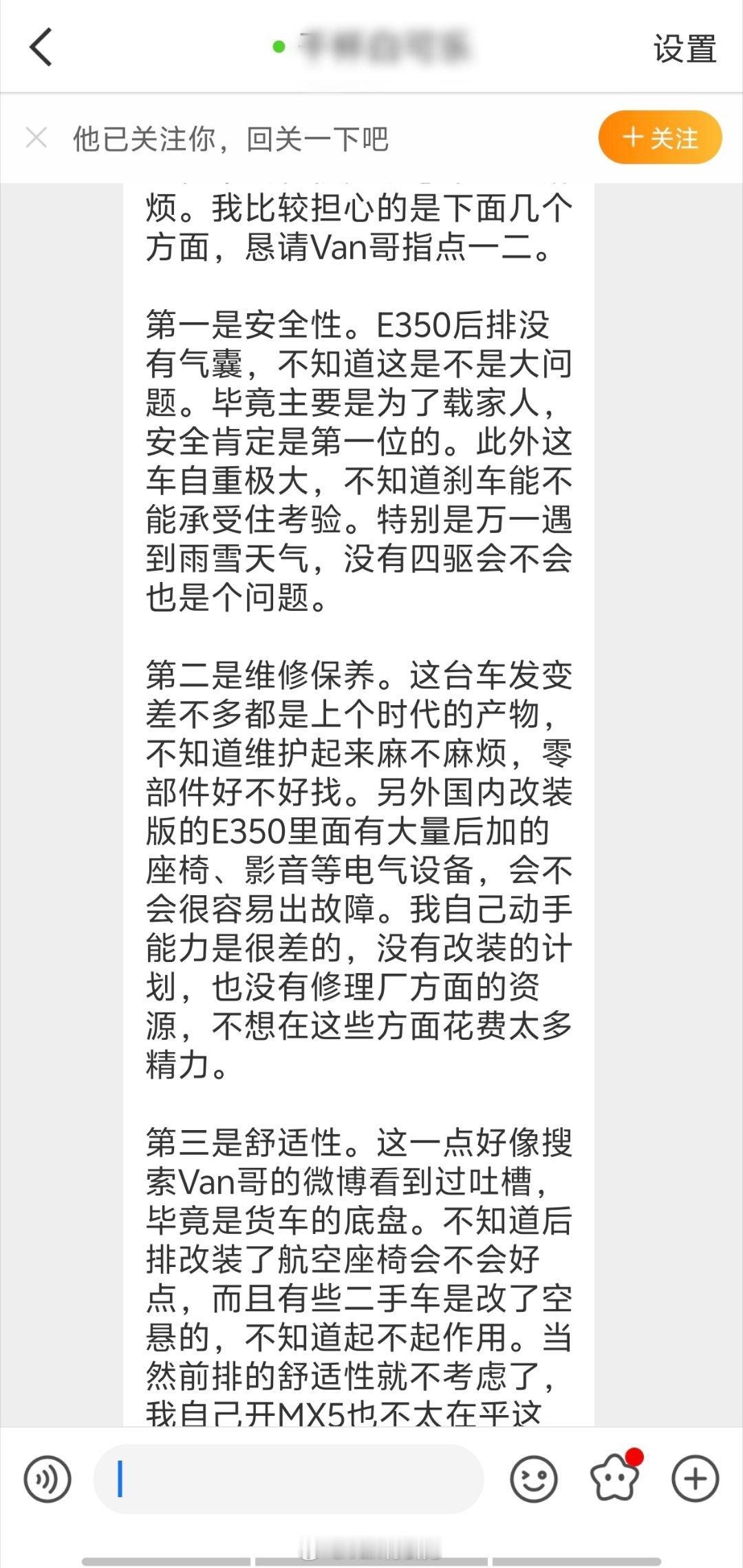 有位开了10年马自达MX-5的粉丝想换个Van,重点是想要禾希的,看上了福特E系列。这车我有点力不从心,各位能人帮帮忙,贡献点意见吧其实VAN哥的拙见,是把W906奔驰凌特后期版放进备选名单,动力、舒适、可靠性都会好一些。我还见过平顶版二手车源,重点是好修(虽然不便宜)二手车van事通