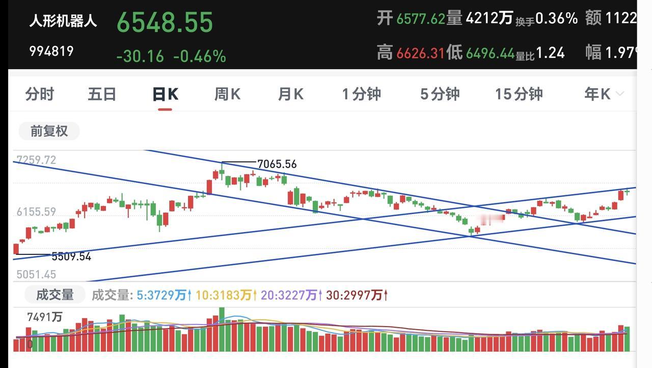 基金:机器人板块的进场和离场条件 哪些板块是热门板块,或者曾经是热门板块,从持有人数就可以判断出来,到上星期五为止,持有人数最多的前五个板块是:半导体板块,cpo板块,机器人板块,创新药板块,恒生科技板块,这几个板块都曾经是,或者现在就是热门板块,各板块的持有人数排行榜,见下面的截图1-4。 机器人板块持有人数排名第三,这个板块上周五下跌了0.06%,近三年上涨了26.01%,上涨幅度不大,许多人看好这个板块,这也是为什么这个板块能够拥进这么多散户的原因。 这个板块上周五加仓人数排行榜见下面的截图7,持有人数排行榜见下面的截图8,加仓人数最多的是鹏华碳中和主题混合,持有人数最多的是永赢先进制造智选混合。 我们来看一下下面的截图9,这是机器人板块日K线图,从图中可以看出,我画了两条倾斜向下的斜线,这是机器人板块日线级别下跌通道,前段时间突破了这个下跌通道的上轨,也就是说,机器人板块日线级别下跌趋势已经被改变。 图中我还画了两条倾斜向上的斜线,这是机器人板块日线级别短期上涨通道,现在的位置处于这个上涨通道内,也就是说,机器人板块日线级别短期处于上涨趋势中。 需要注意的是,现在的位置处于机器人板块日线级别短期上涨通道上轨的附近,想进场的人需要耐心等待,如果缓慢下跌到这个上涨通道的下轨附近,短线持有的人可以考虑要不要进场,如果快速跌破这个上涨通道的下轨,短线持有的人可以考虑要不要离场。 我们来看一下下面的截图10,这是机器人板块周K线图,从图中可以看出,我画了两条倾斜向上的斜线,这是机器人板块周线级别上涨通道,现在的位置处于这个上涨通道内,也就是说,机器人板块周线级别处于上涨趋势中。 需要注意的是,现在的位置处于机器人板块周线级别上涨通道下轨附近,长线持有的人,只要不快速跌破这个上涨通道的下轨,就可以考虑要不要进场,如果快速跌破这个上涨通道的下轨,长线持有的人也需要考虑要不要离场。 短线持有的人和长线持有的人,进场和离场的依据是不一样的,短线持有的人可以观察日线级别趋势,根据日线级别趋势来做进场和离场的决定,长线持有的人必须观察周线级别趋势,根据周线级别趋势来做进场和离场的决定,很多时候,观察日线级别和周线级别趋势,得出来的结论是不一样的,当日线级别和周线级别趋势都向上的时候,是阶段性共振上涨,当日线级别和周线级别趋势都向下的时候,是阶段性共振下跌,当日线级别和周线级别趋势不一样的时候,是震荡阶段,当日线级别趋势向上,周线级别趋势向下,是短线反弹,大方向向下的阶段,当日线级别趋势向下周线级别趋势向上,是短线震荡,大方向向上的阶段,当然,日线级别趋势向上,周线级别趋势向下,足够强的日线级别向上趋势也会带动周线级别趋势的改变,也就是会把周线级别的向下趋势,改变为周线级别趋势向上。 机器人板块,短线持有者现在进场需要等待,长线持有者可以考虑进场,短线持有者的持有条件是日线级别上涨通道的下轨,只要不跌破这个日线级别上涨通道的下轨,短线持有者都可以继续持有。长线持有者的持有条件是周线级别上涨通道的下轨,只要不跌破这个周线级别上涨通道的下轨,长线持有者都可以继续持有。 我每天都会分享我的观点,我的观点只代表我个人的看法,不能作为你操作的依据,据此操作后果自负。