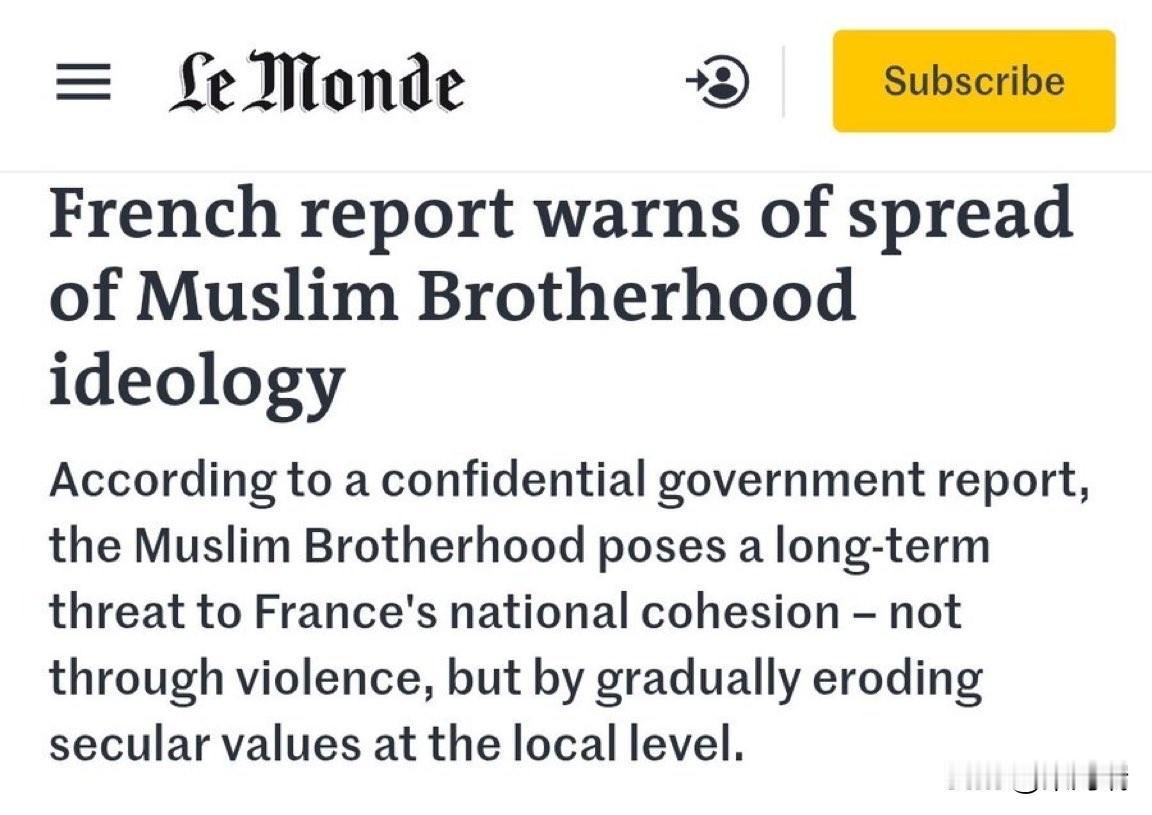 据法国《世界报》(Le Monde)报道,法国政府的一份报告指出,穆斯林兄弟会已经渗透到学校、政治和民间机构中,这是其“伊斯兰化”法国、破坏国家凝聚力的长期计划的一部分。 威胁已不再是秘密——它已经制度化,而且正在逼近美国。 报告声称,穆斯林兄弟会的法国分支“法国穆斯林联合会”(FMF)正试图渗透国家机构,通过地方层面的协会、学校和体育项目推广政治伊斯兰主义,从而从内部改变法国社会。 据估计,法国约有7%的穆斯林礼拜场所(139个)与该组织有关联,另有280个教育、慈善和体育协会被认为受其影响。 法国总统马克龙已召开安全会议,要求政府提出应对措施,以打击政治伊斯兰主义的影响力。然而,批评者认为政府夸大了威胁,加剧了对法国穆斯林的污名化和怀疑。