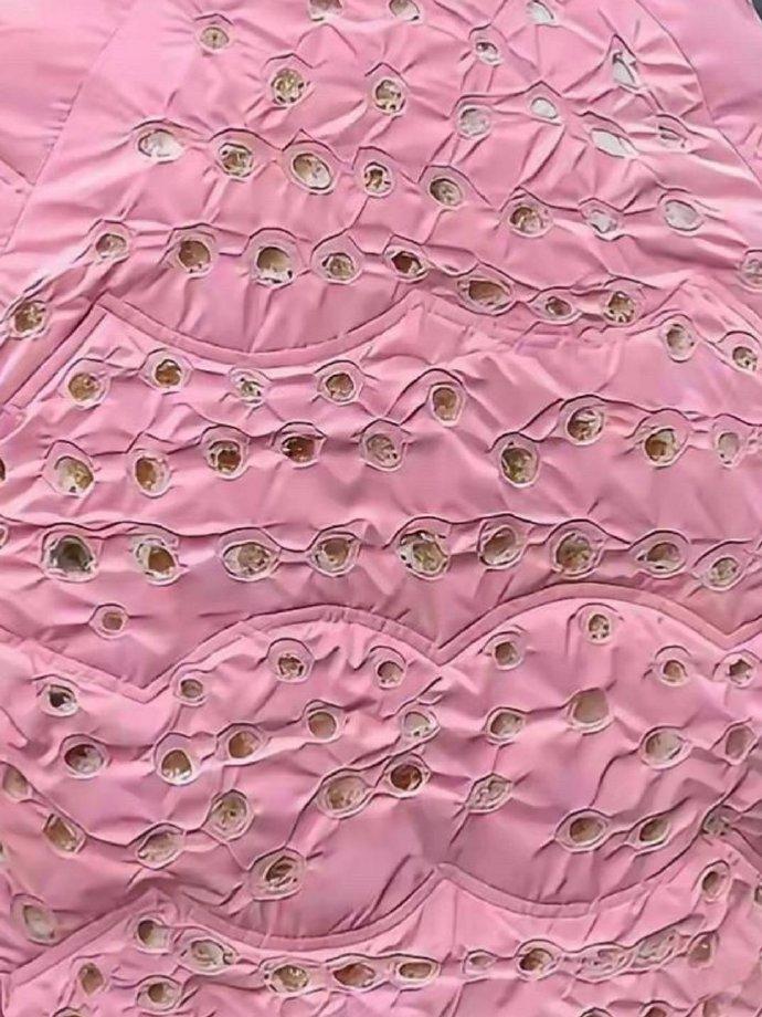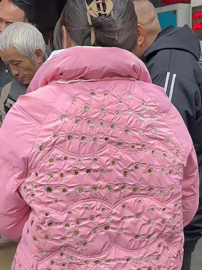 正拍到超搞笑的一幕,一件粉色羽绒服后背被戳满了密密麻麻的破洞,这“镂空设计”属实刷新认知,难道是今年的新款潮流,主打一个通风透气?你们见过哪些让人哭笑不得的奇葩穿搭/衣物损坏现场?评论区聊聊~ 搞笑瞬间 奇葩穿搭