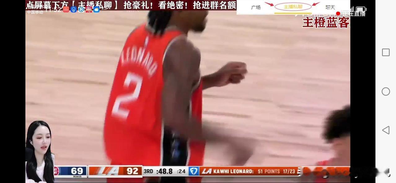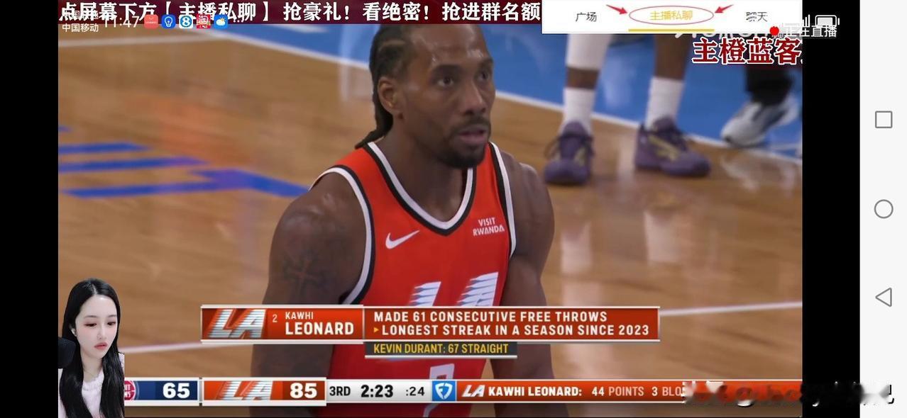 一人打垮一支球队,小卡 单节26分开启无敌模式!目前三节51分7板1助5断3帽,创个人得分记录!! 字幕君很忙啊,只见左下角不停地更新莱昂纳德的得分数据,忙的不可开交。 很可惜的是小卡31罚12中的罚球,连续罚球命中记录中断了。 我记得此前四场,包括今天,是连续命中了40多球。 单打真是美如画,24中17佛挡杀佛!