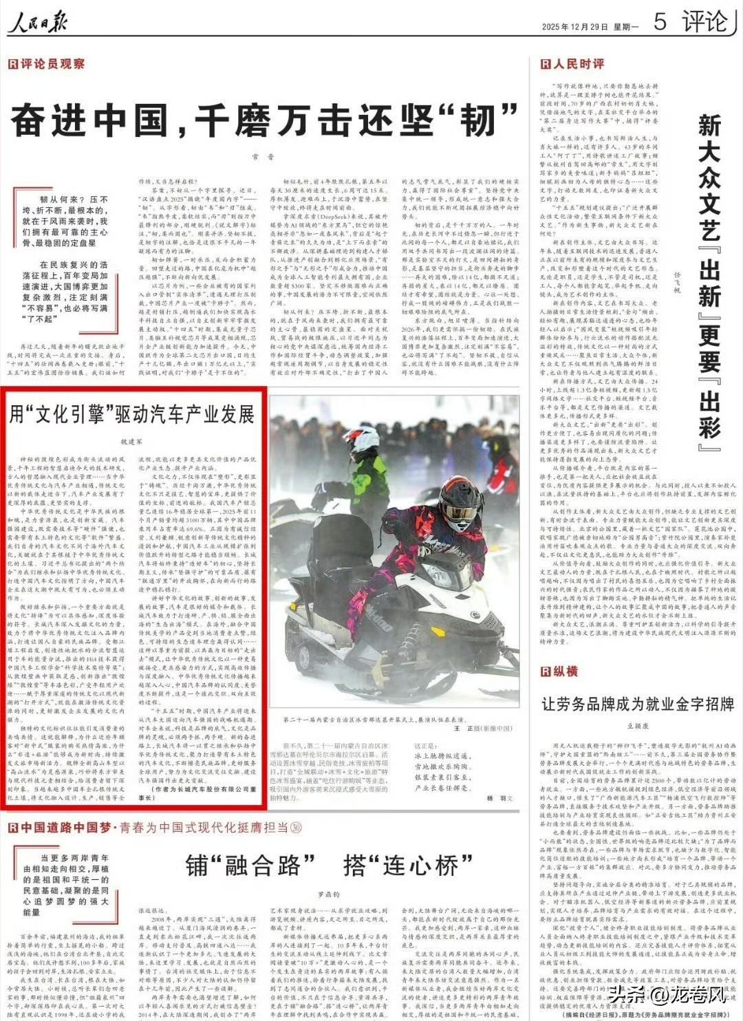 长城汽车魏总上人民日报了。 长城汽车董事长魏建军在《人民日报》评论版发表署名文章
