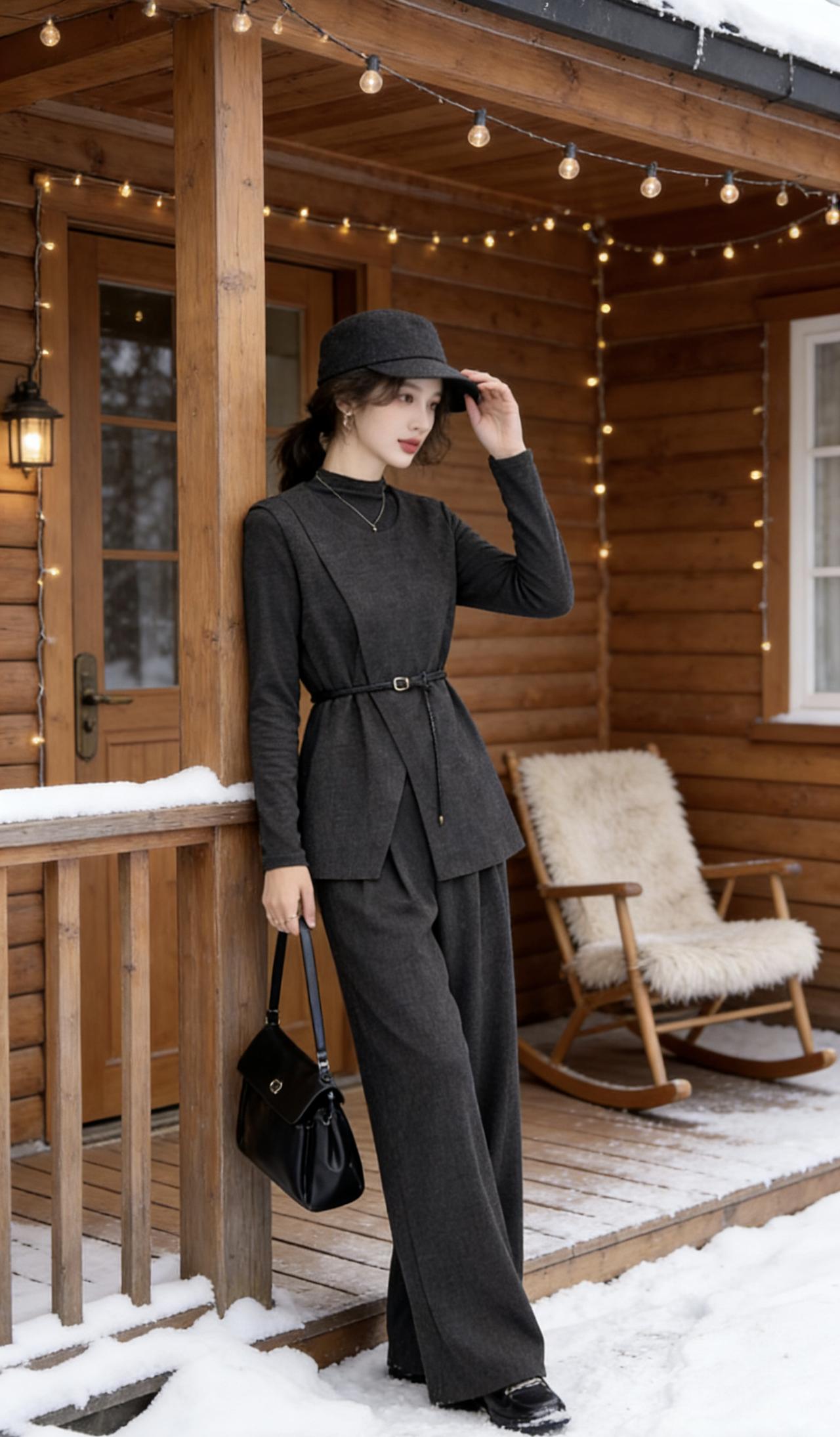 秋冬马甲阔腿裤
