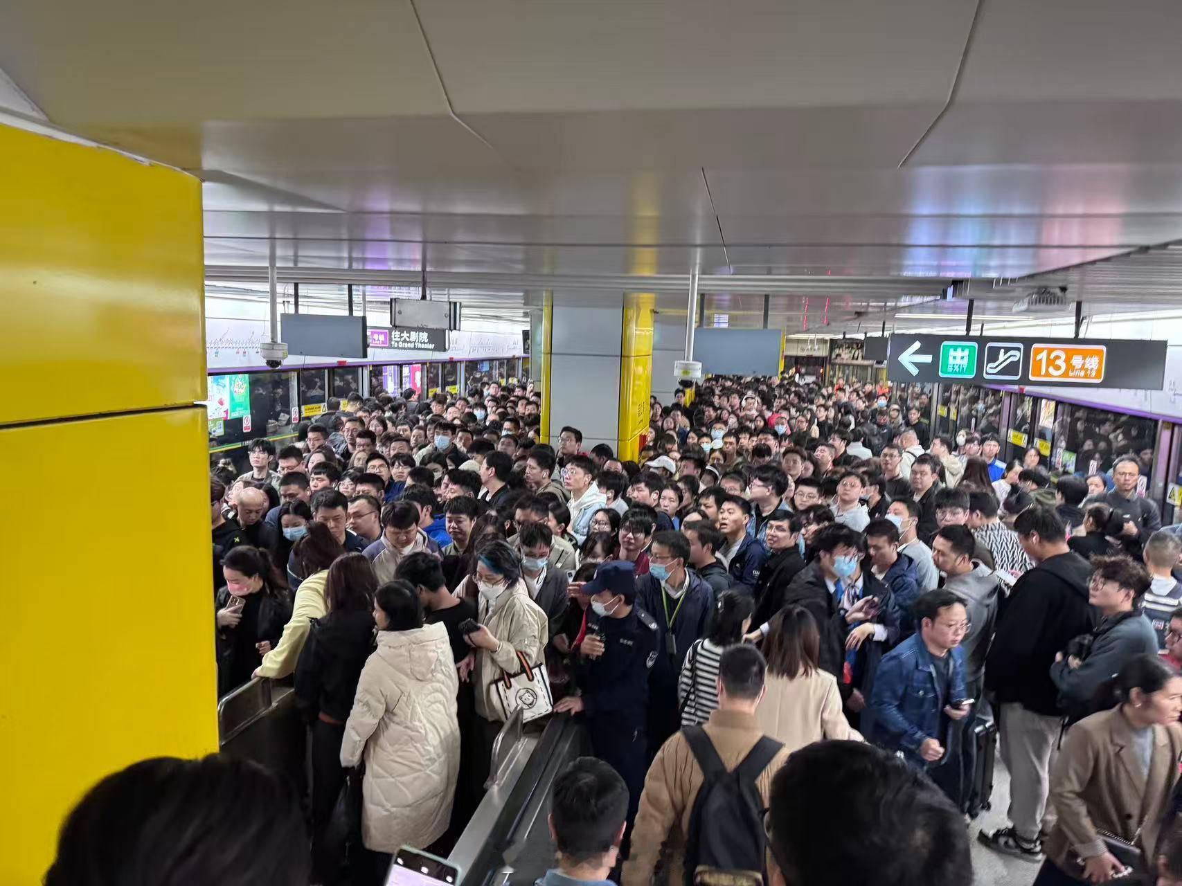 深圳地铁13号线北延开通工作日第一天,在留仙洞换乘彻底崩了。中间停了10分钟,说是人太多,差点发生踩TA。。。深圳