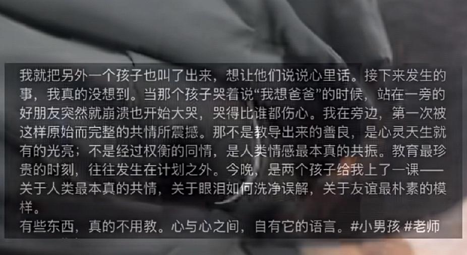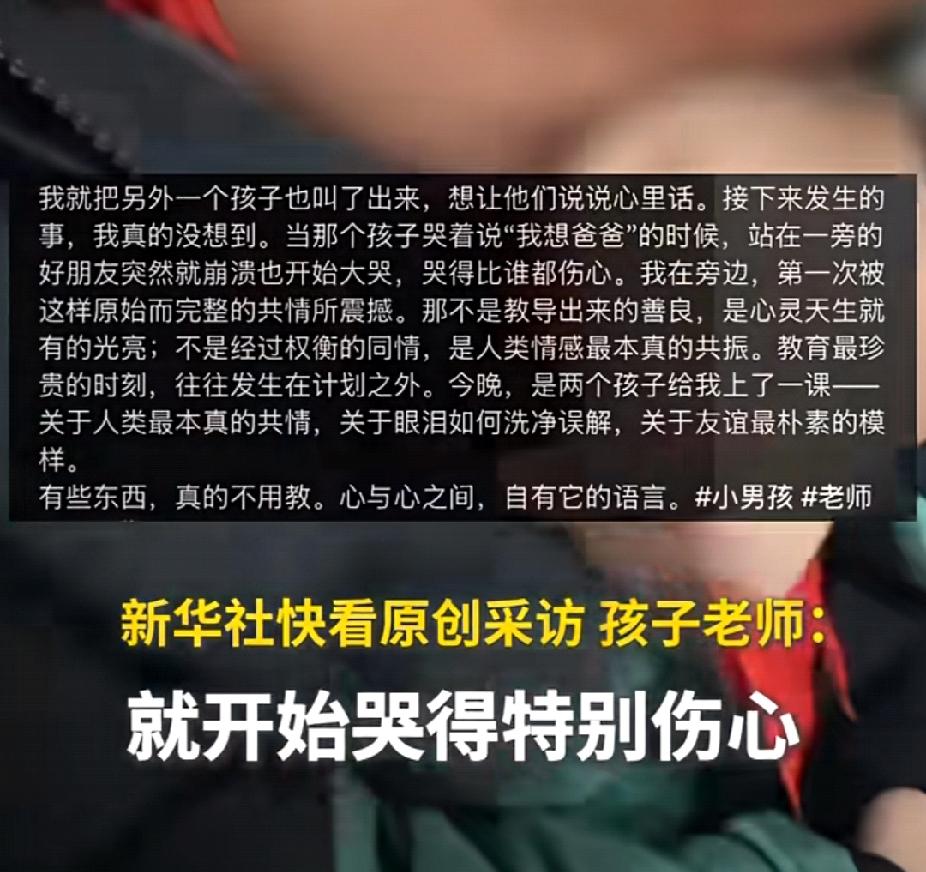 看哭了!男孩一句:“我爸爸去世了。”男孩的好朋友埋头痛哭!老师:“这是最原始的共