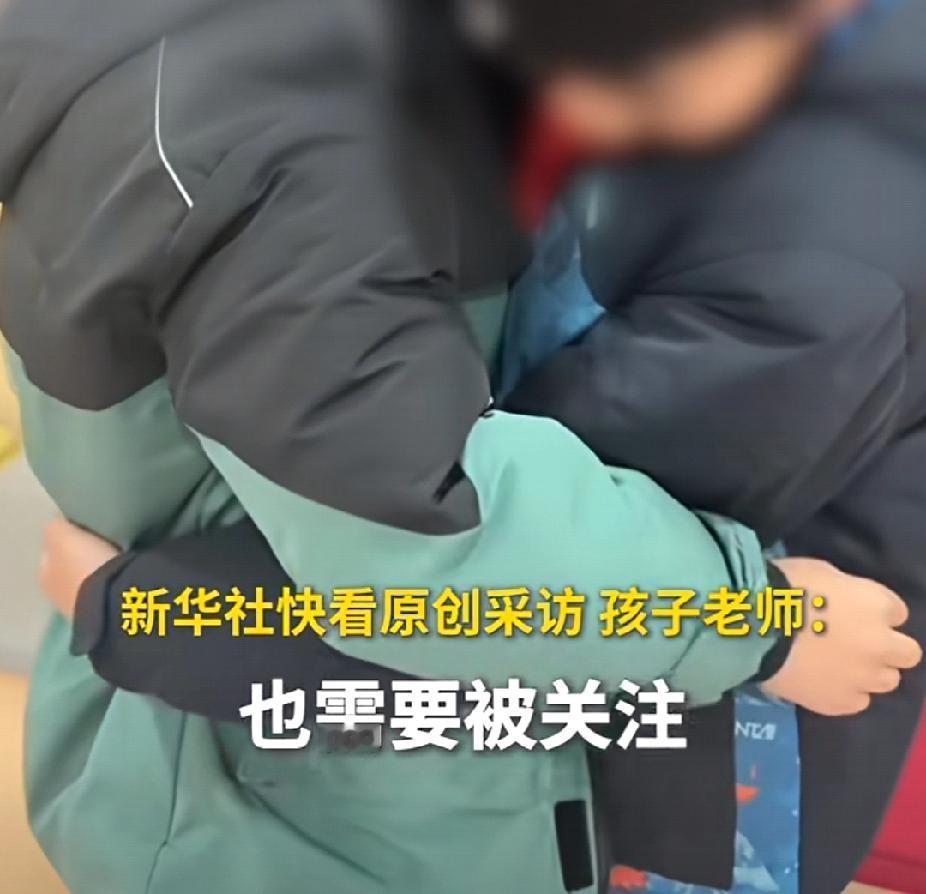 看哭了!男孩一句:“我爸爸去世了。”男孩的好朋友埋头痛哭!老师:“这是最原始的共情力!” 近日,安徽一个男孩因为一些误会与自己最好的朋友渐渐疏远。心思细腻的老师也发现两个孩子原来总是形影不离,最近却都孤独的坐在自己的座位上闷闷不乐的样子。 老师猜测两个孩子肯定是闹了矛盾,于是便想着帮两个孩子化解心中的隔阂。 老师把这两个孩子喊出教室,两个孩子都坐在那儿不说话,谁也不搭理谁。 穿蓝色衣服的男孩先开了口:“我爸爸去世了。” 男孩说自己的爸爸去世了,这段时间自己又和好朋友闹矛盾,所以自己很思念爸爸。 男孩说完后,空气再次变得无比安静。 穿绿色衣服的男孩埋头痛哭起来,或许是感受到好朋友失去父亲、思念父亲的痛苦;又或许是自己心中和好朋友心中一样,明明内心还想要成为彼此最好的朋友,却执拗地不肯低头,内心忍受着渐渐失去好朋友的痛苦之中。 痛哭过后,两个男孩在老师的引导下相互拥抱、最终冰释前嫌! 老师说:“我感受到了最为原始,最为纯真的共情力!” 这是一个非常细心负责任的老师,她用心感受着每一个孩子的成长,这是两个重感情且心思细腻的孩子,心软是他们互相吸引的动力。希望他们的友谊长长久久!也祝愿他们的人生道路上尽是坦途!共情 安徽