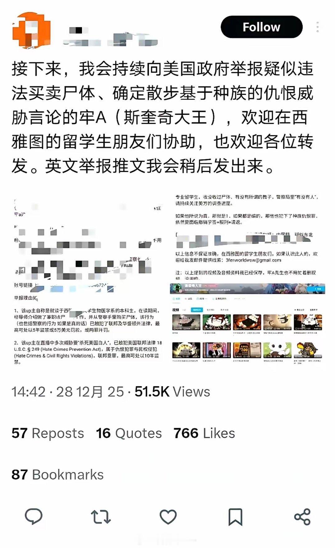 揭露斩杀线的牢A真的要小心了,好多在西方的土殖都在举报牢A,甚至有人已经准备举报到美国FBI了,在北美的土殖群发动人寻找牢A!这群土殖真的急了,因为牢A把它们最后的遮羞布给撕下来了,一个美化过的美国是这些土殖保持内心优越感的源泉,牢A一把给推倒了,所以牢A就成了它们的眼中钉肉中刺!但是美国的新闻学都没有否认斩杀线,甚至还用来抨击川普做得不好,这就尴尬了,美国人没否认,土殖们却在否认。。。