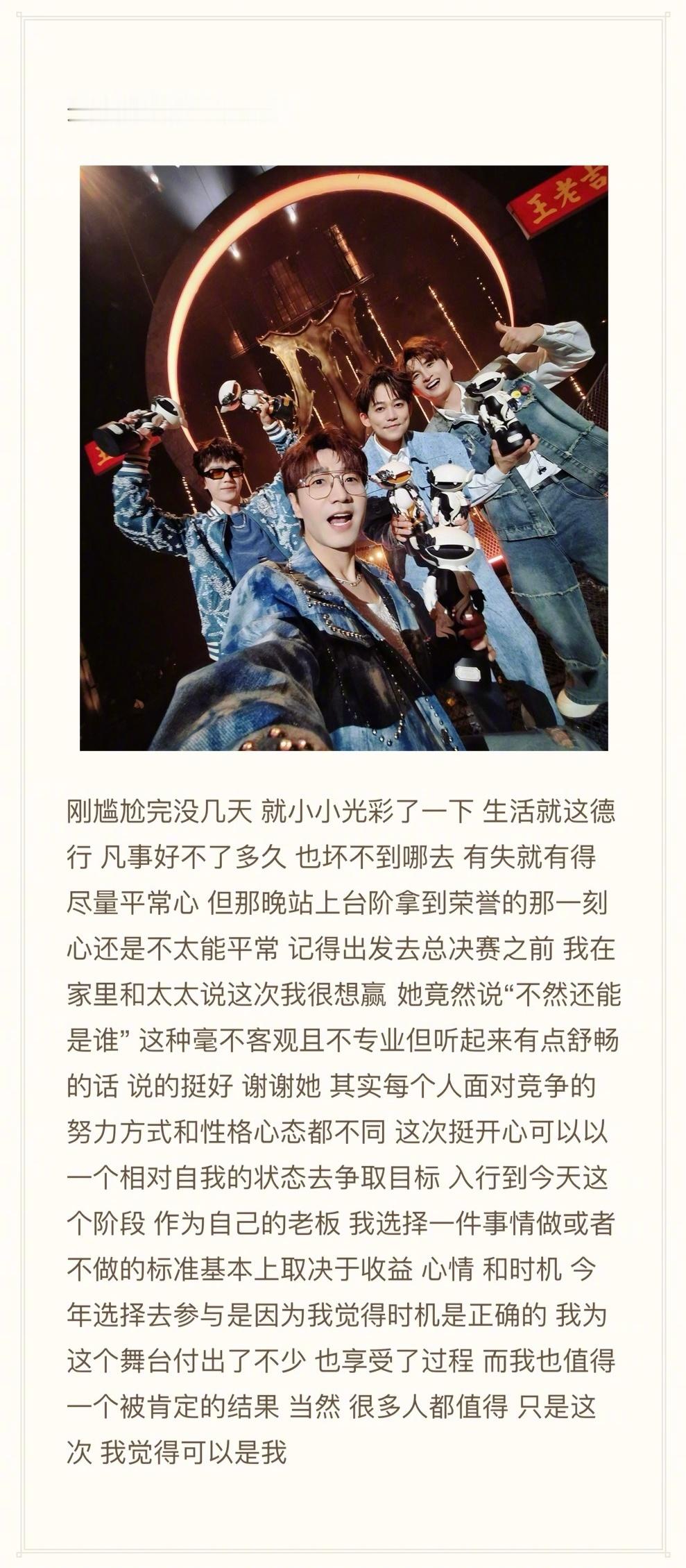 苏醒 记得来路记得感恩苏醒发布了关于2025年度总结的博文,最后写道记得来路记得感恩。苏醒记录了2025年的9个moment,无奈 痛苦 兴奋 欣慰 遗憾 稳定 尴尬 荣耀 感恩,记录了今年有特别意义的片段。最后一张说「希望记得来路,记得感恩」,还是那个有思考有内涵的内娱活人!希望2026苏醒哥哥也可以多开巡演多发专辑,一起记录2026的精彩时刻呀!跨年热梗制造机
