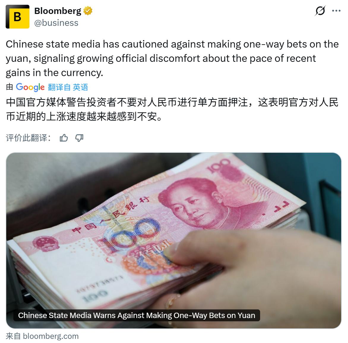 人民币升值过快不符合中国利益, 对人民币单方面押注也不利于经济发展, 这很可能会导致热钱的快速进出, 对经济稳定发展产生负面影响。 人民币应该是在市场机制下双向波动。 因此,近期有关部门警告投资者, 不要对人民币进行单方面押注, 近期人民币汇率横盘在7上下附近, 就是为了打破单边升值的趋势。 但人民币长期升值的大方向应该不会变, 因此要特别注意热钱短线操作。