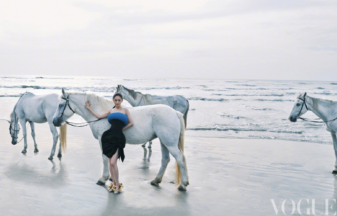 杨幂海边女骑士VOGUE大片,就这个时尚女王爽!骑马那张太权威太绝了。。
