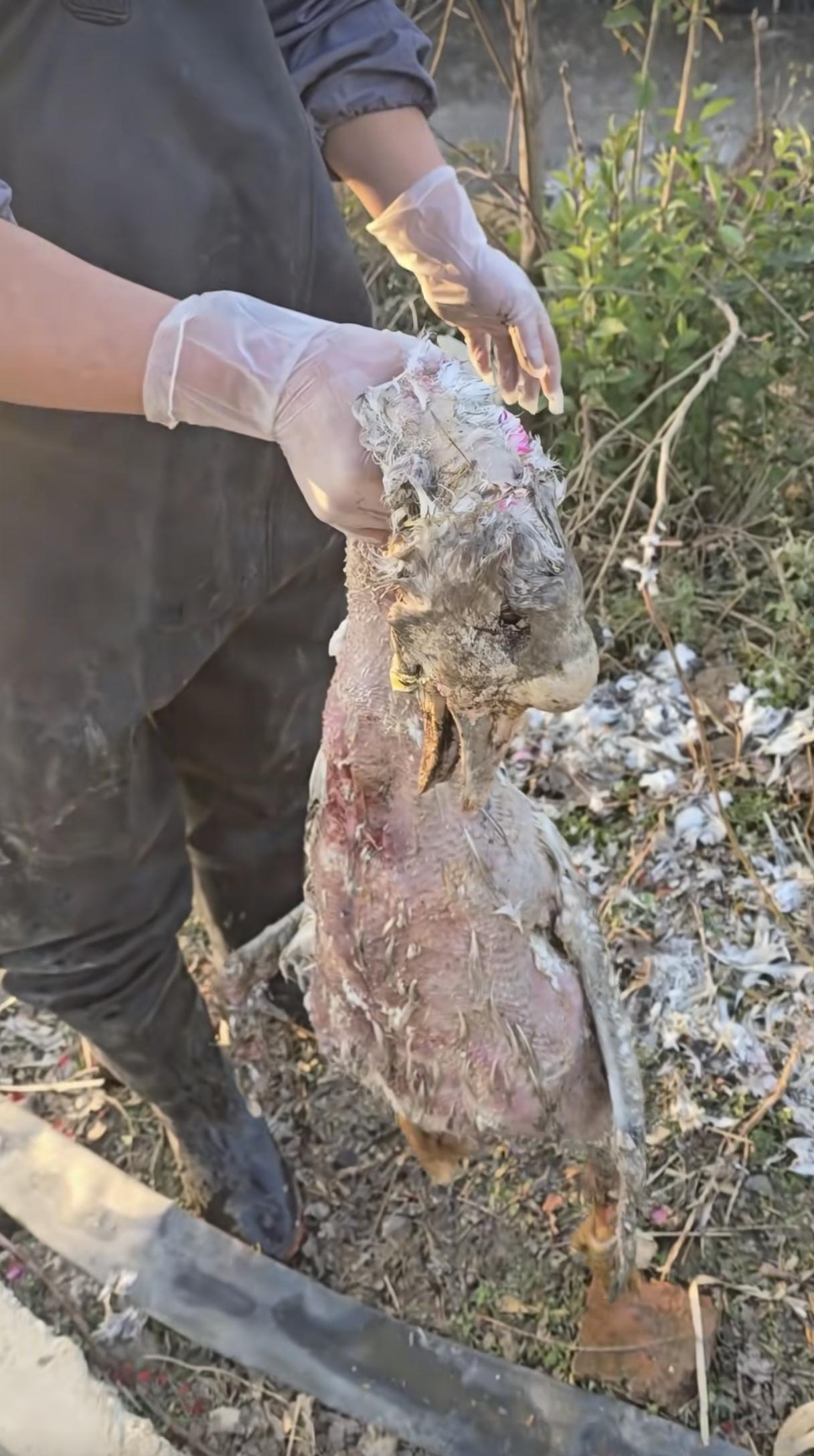 是什么咬的?一只18斤大鹅在家门口水沟里突然不见了,监控显示好像被什么东西拽到了